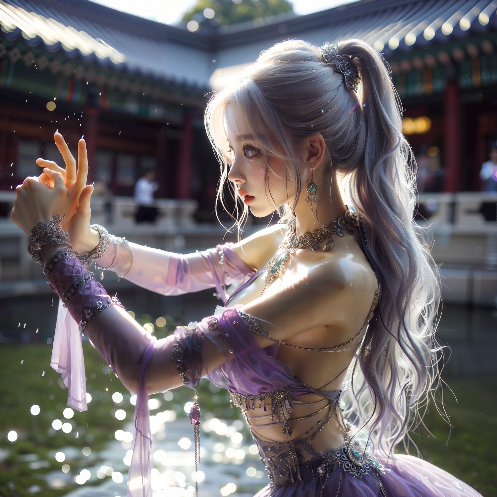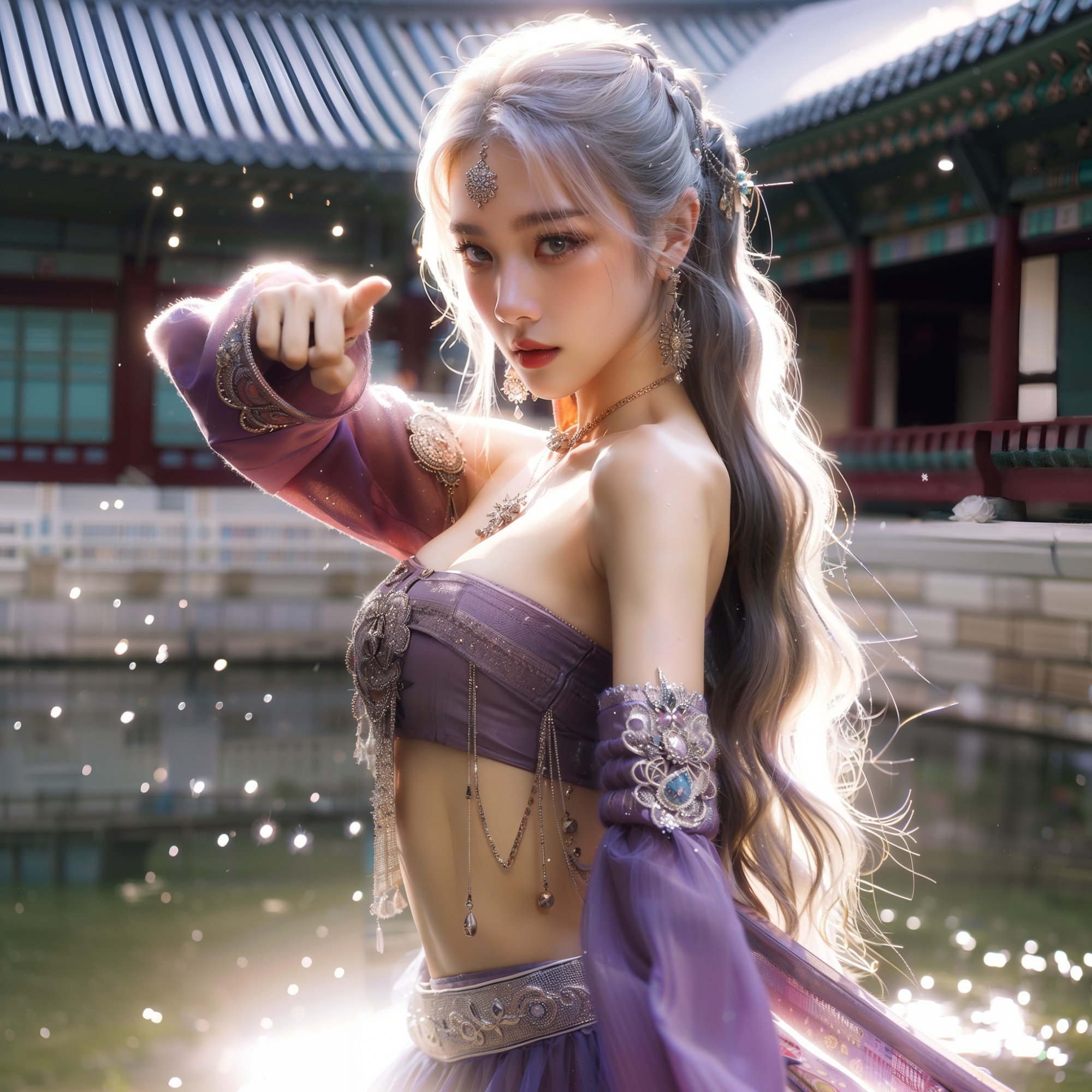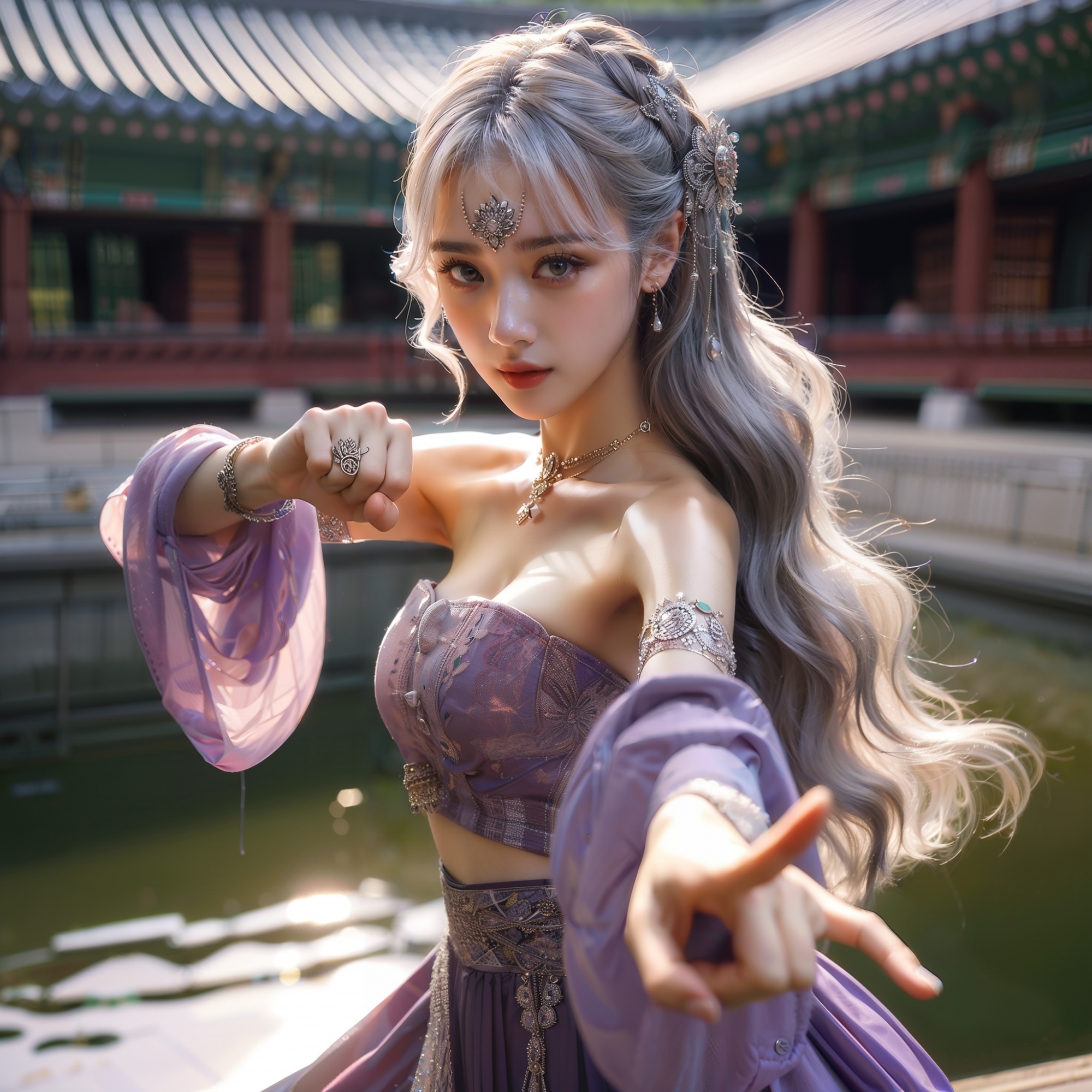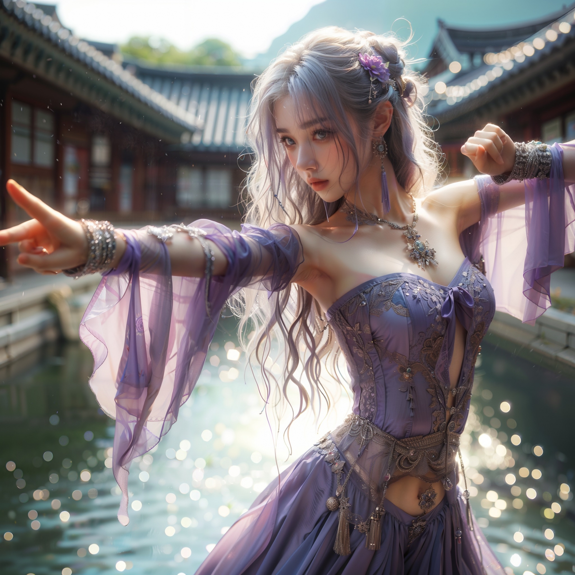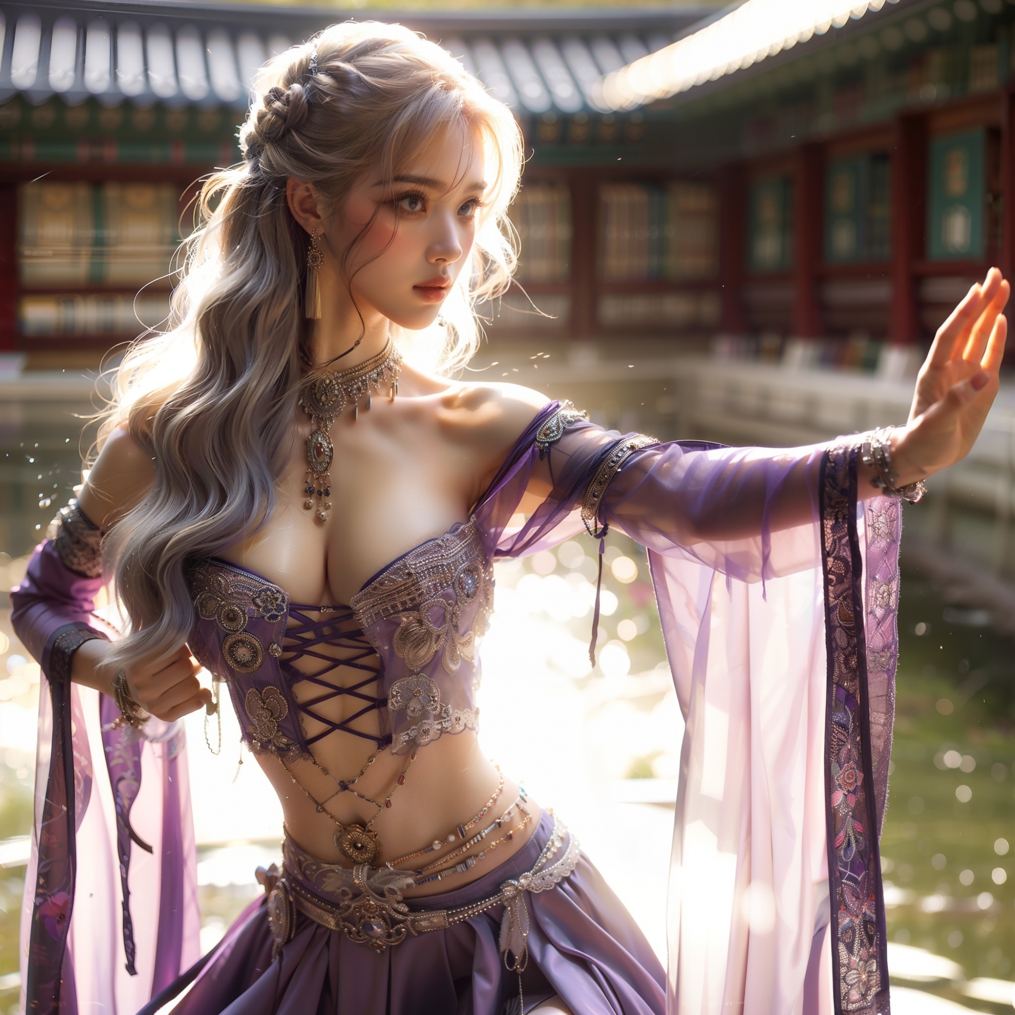 湖畔練武的少女