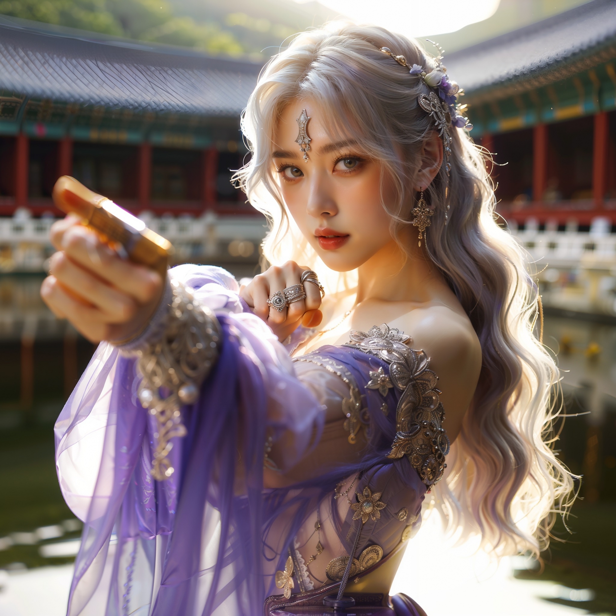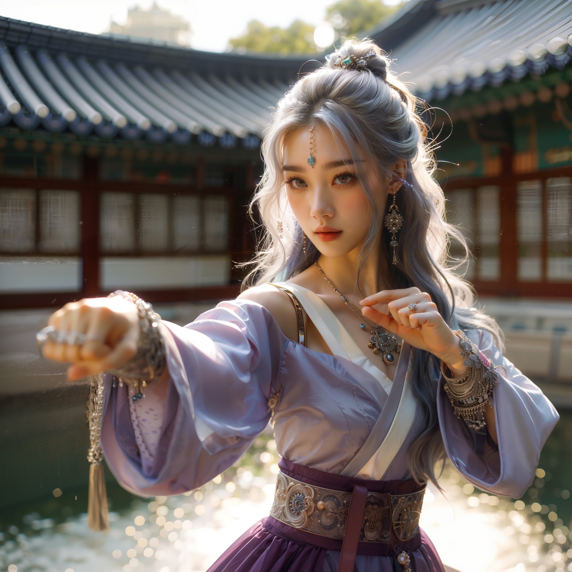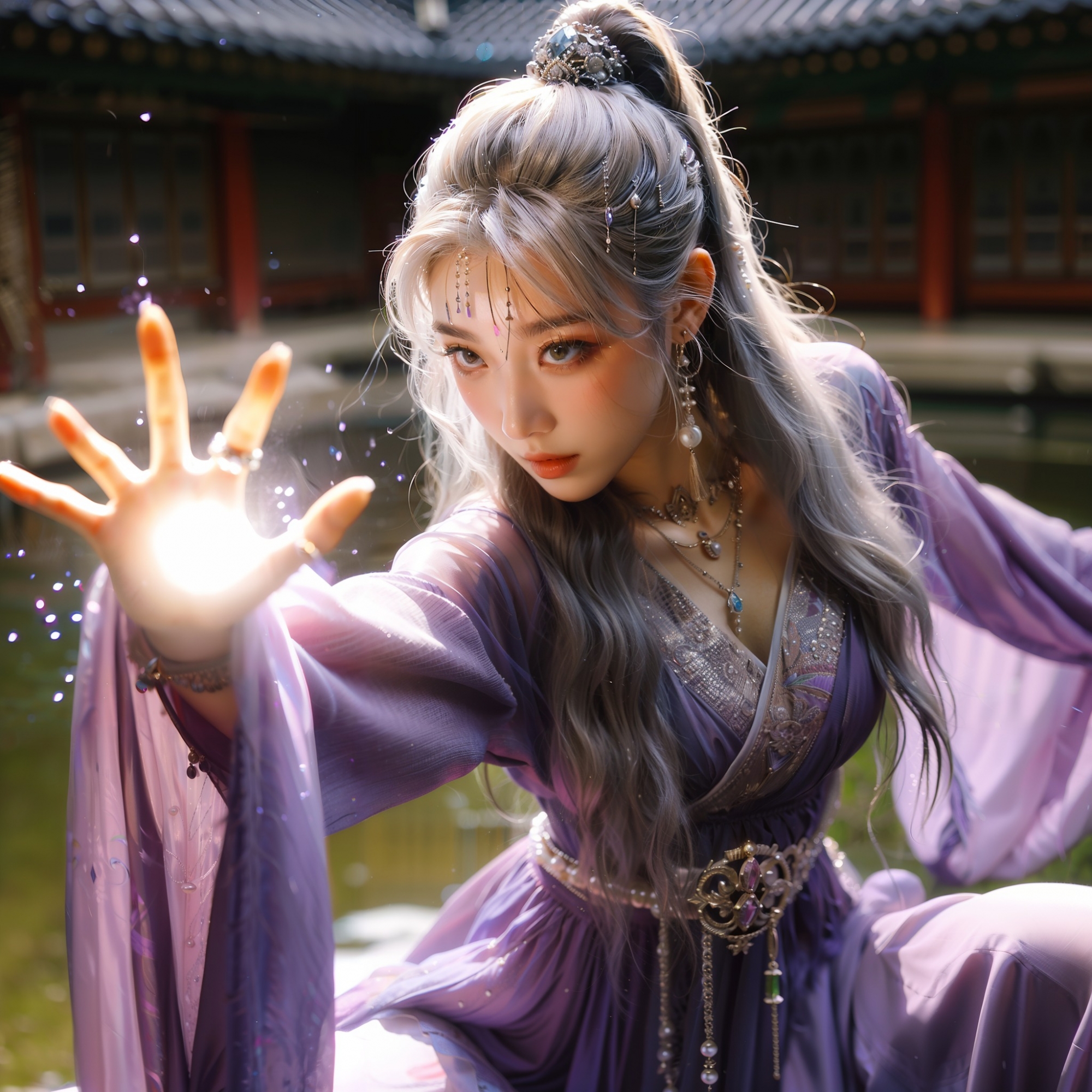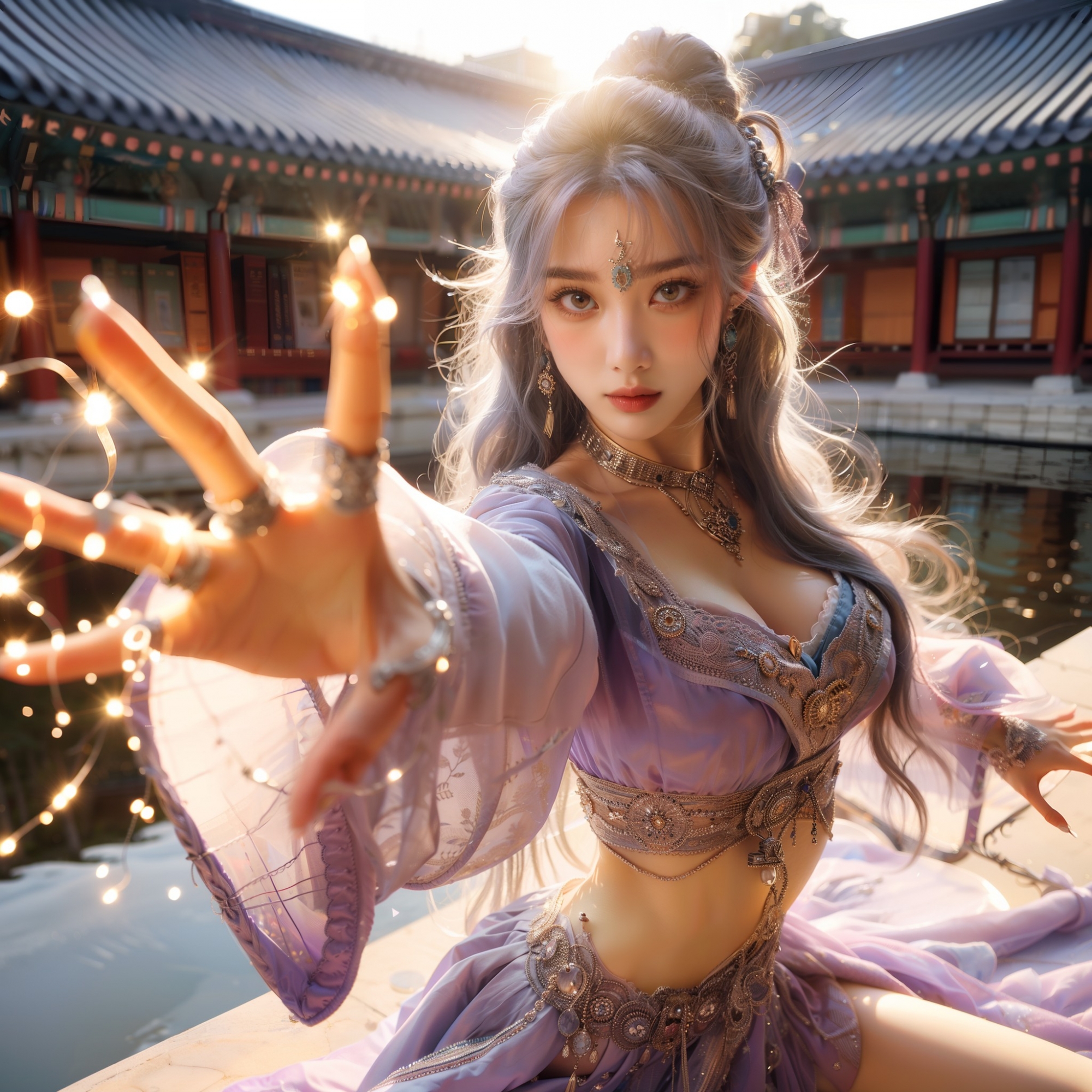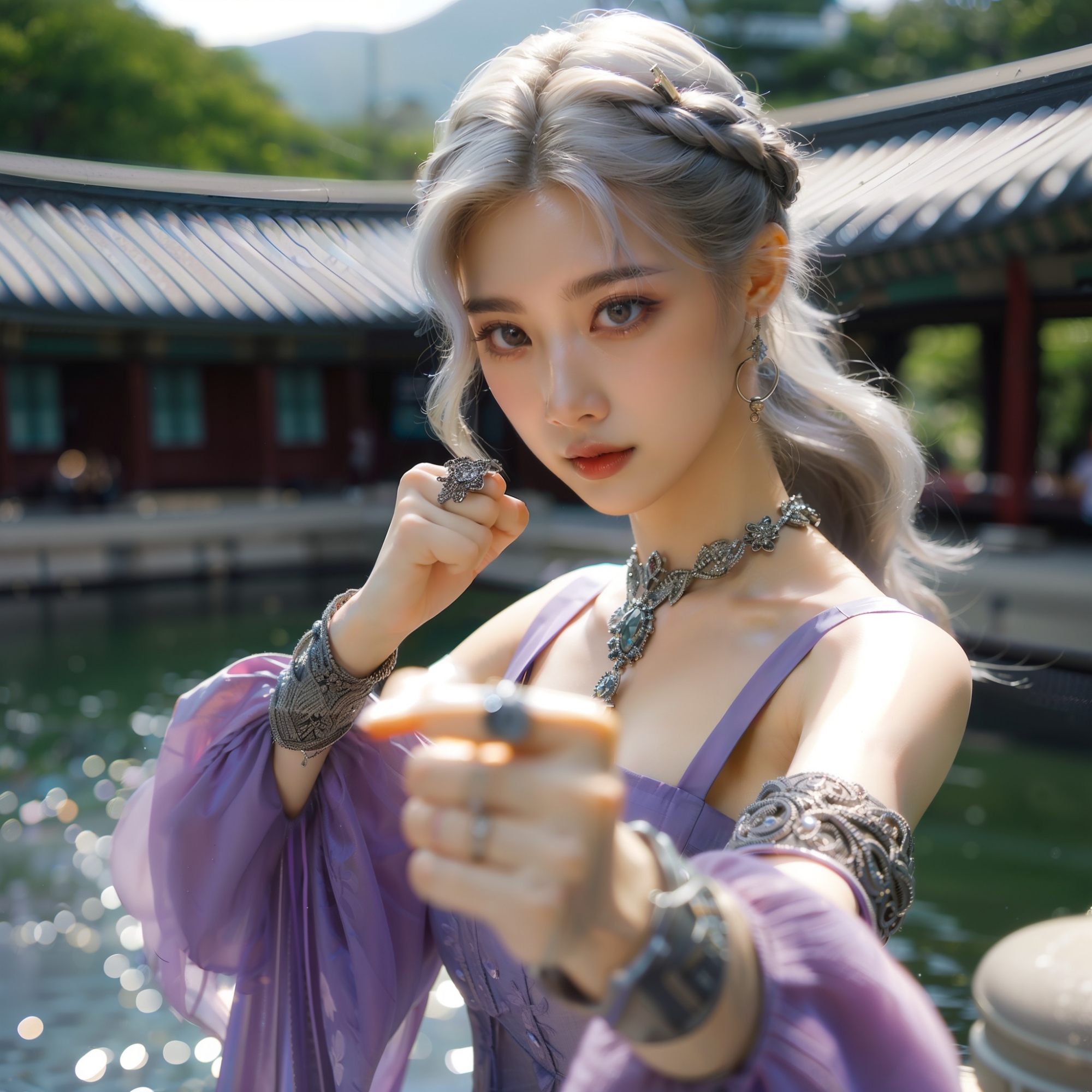 湖畔練武的少女