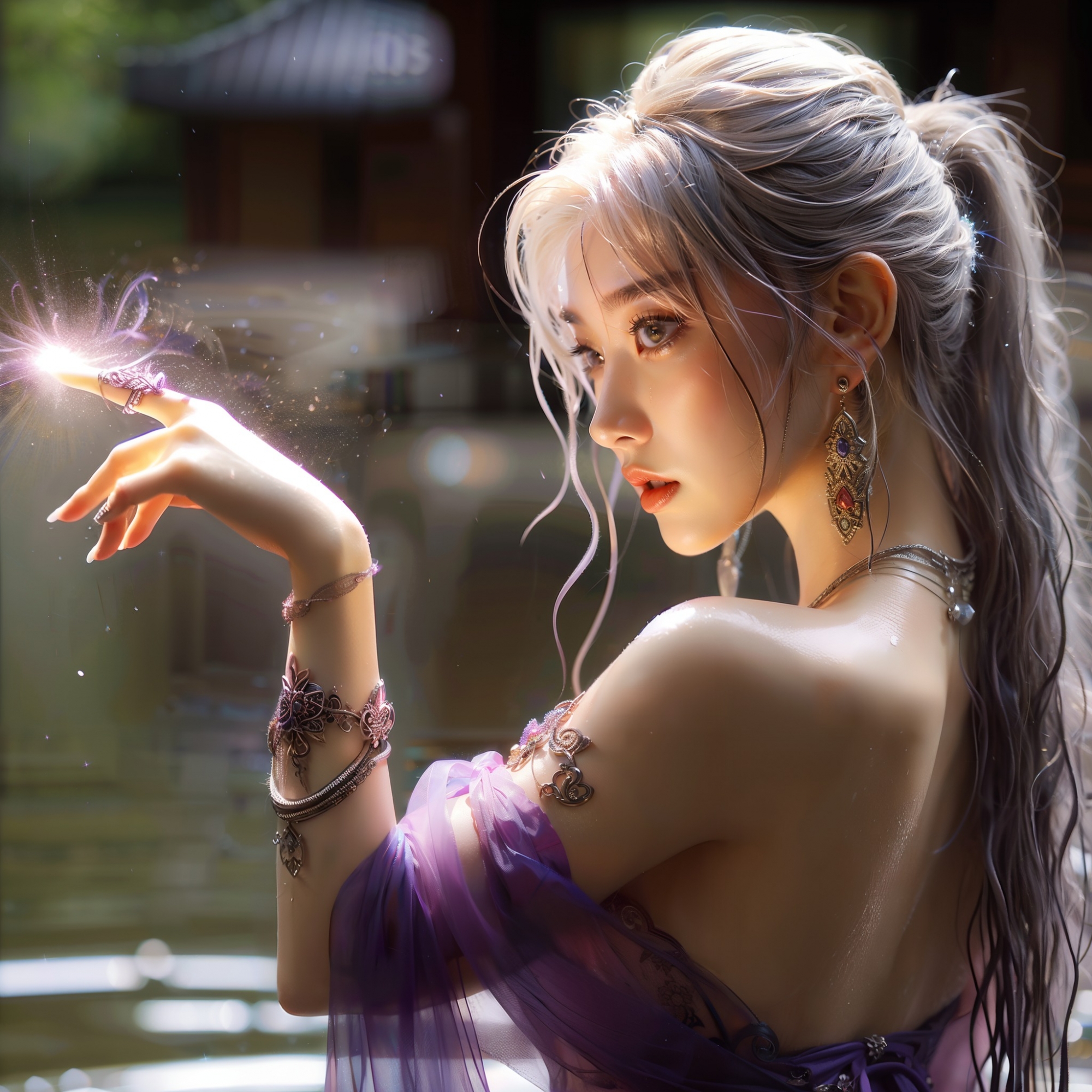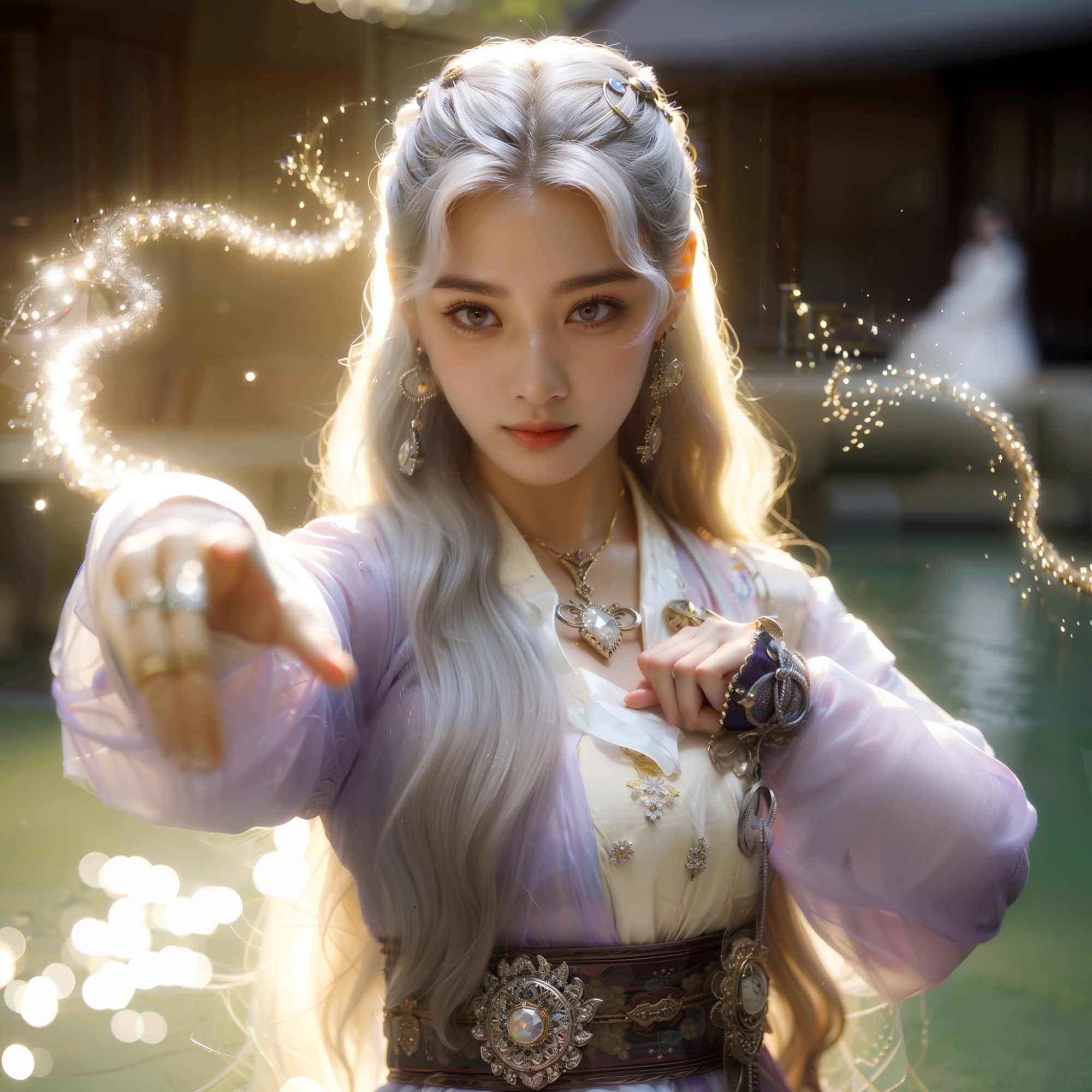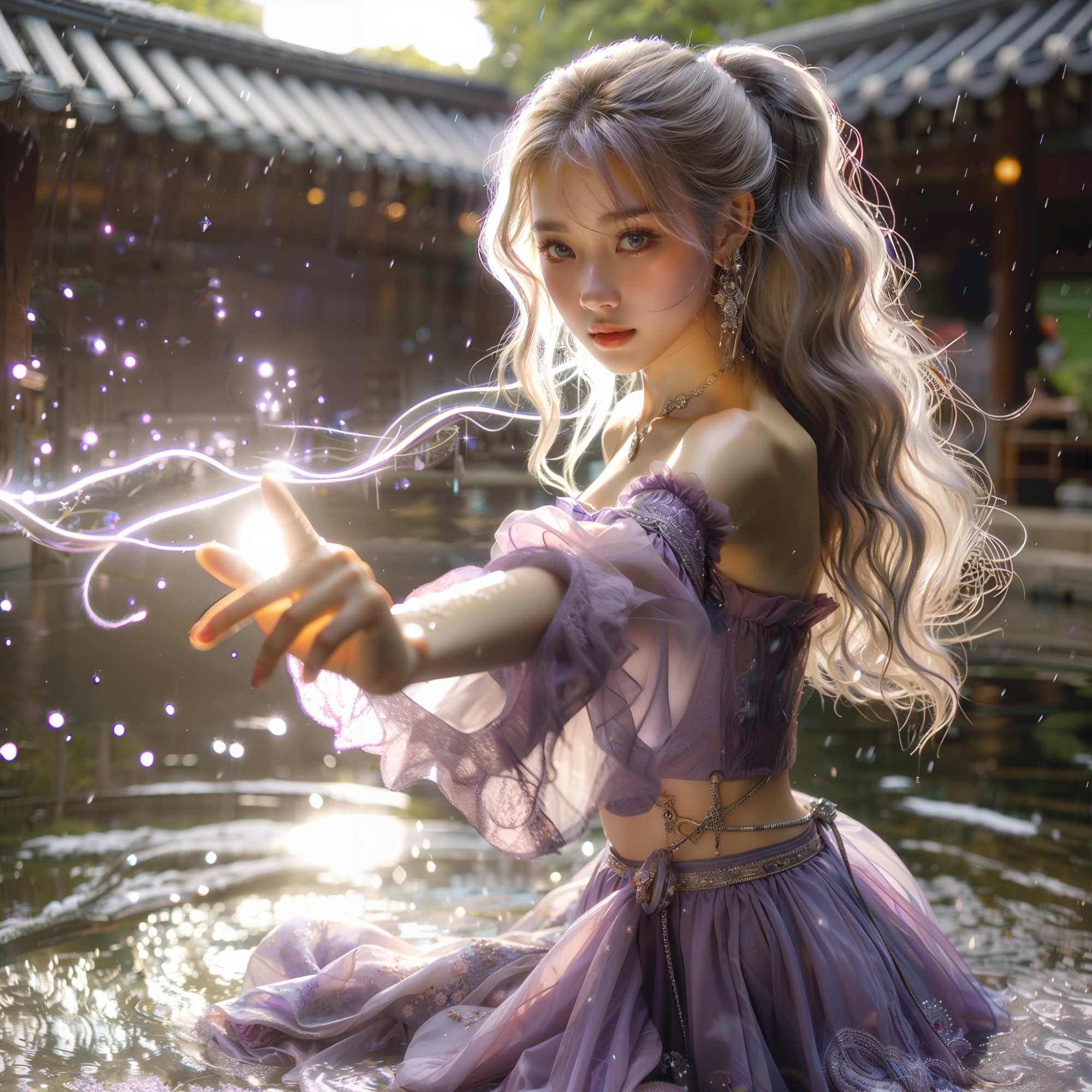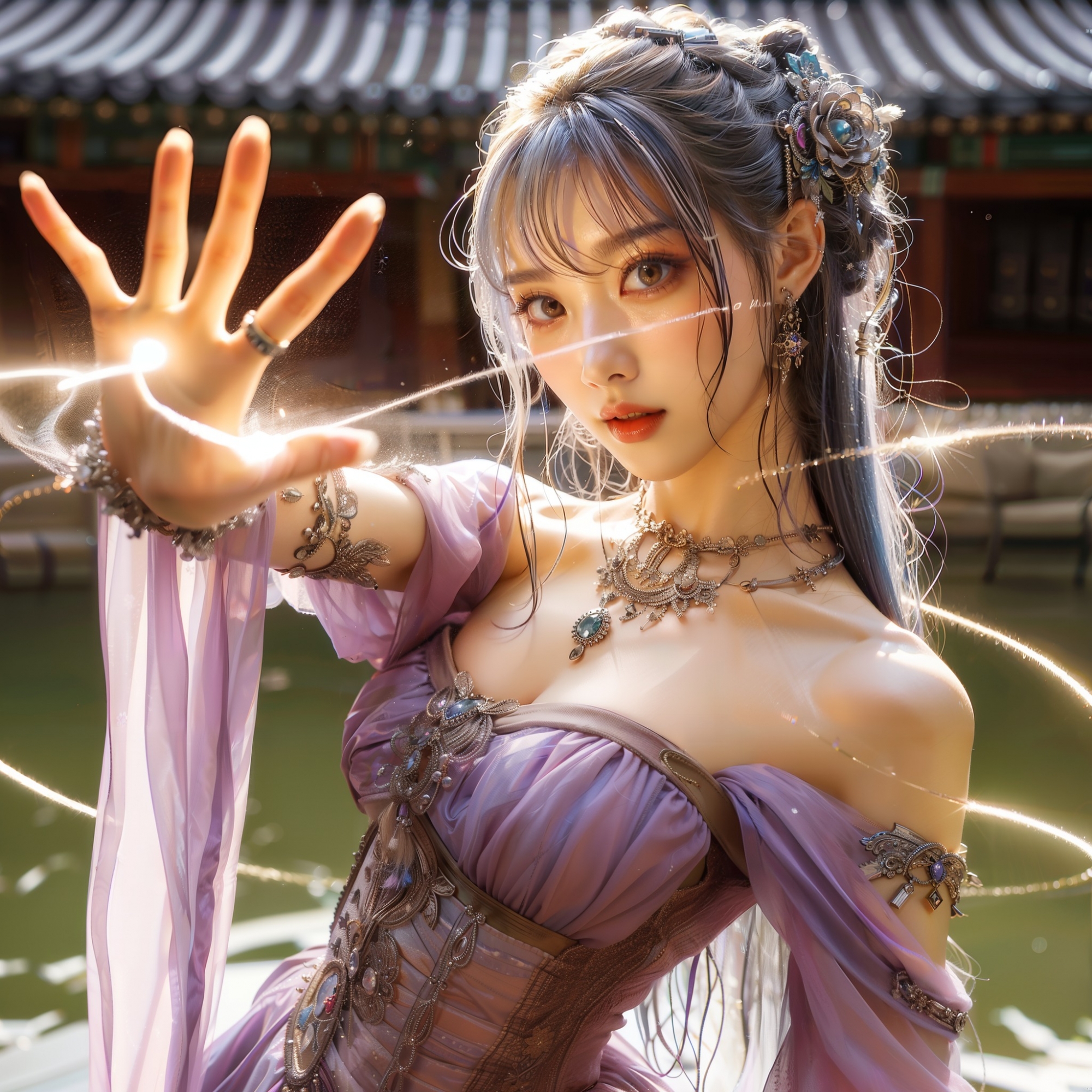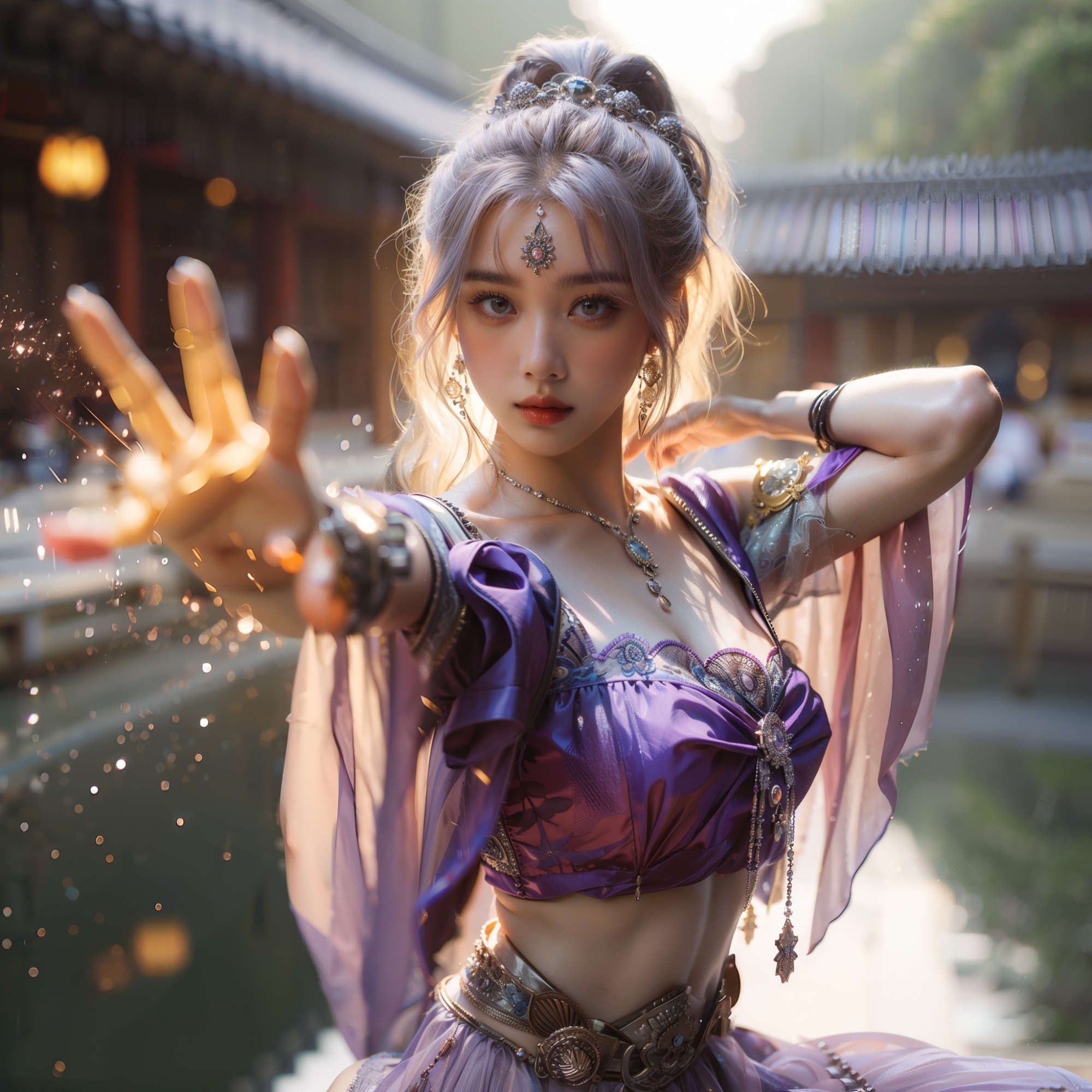 湖畔練武的少女