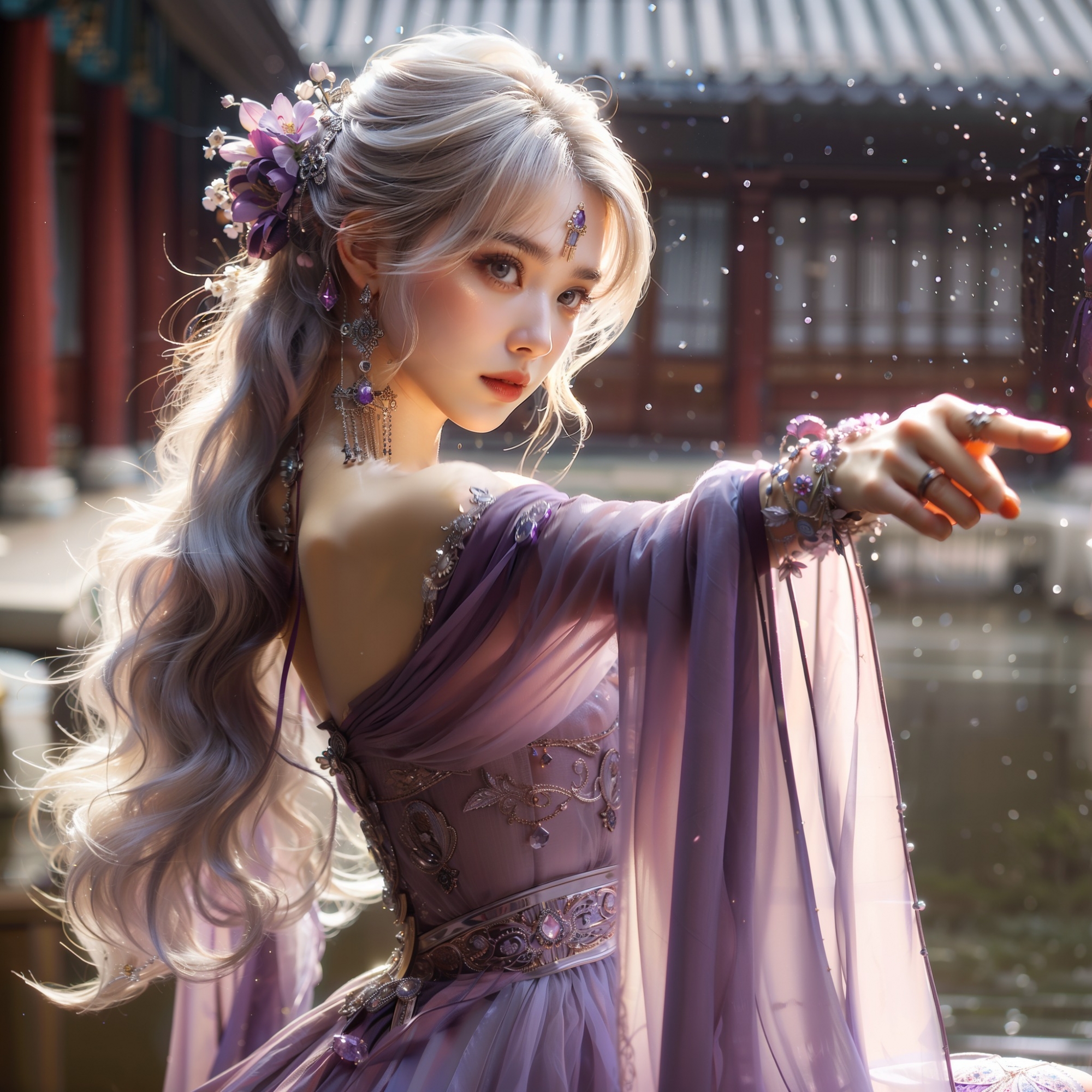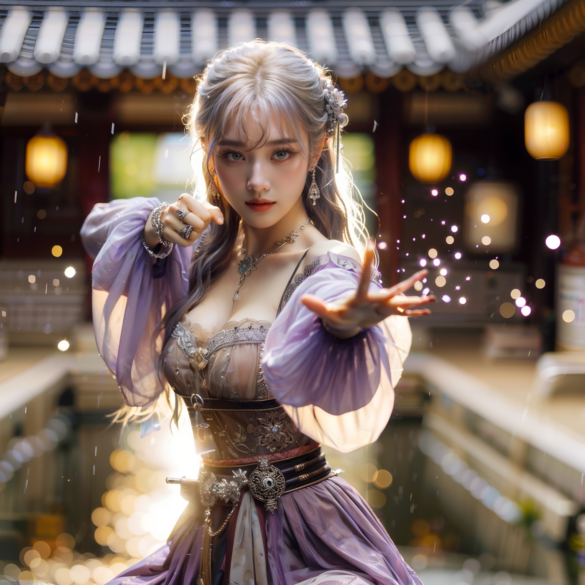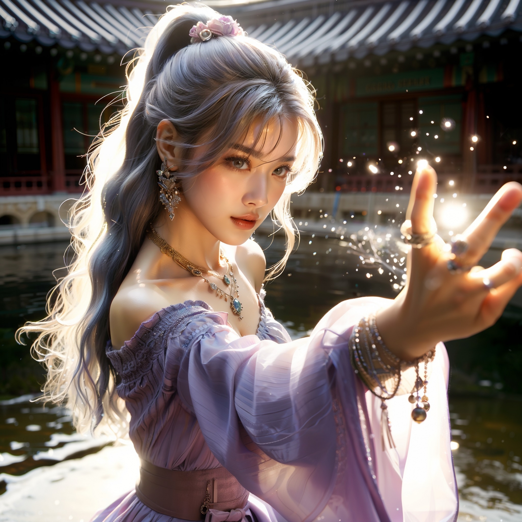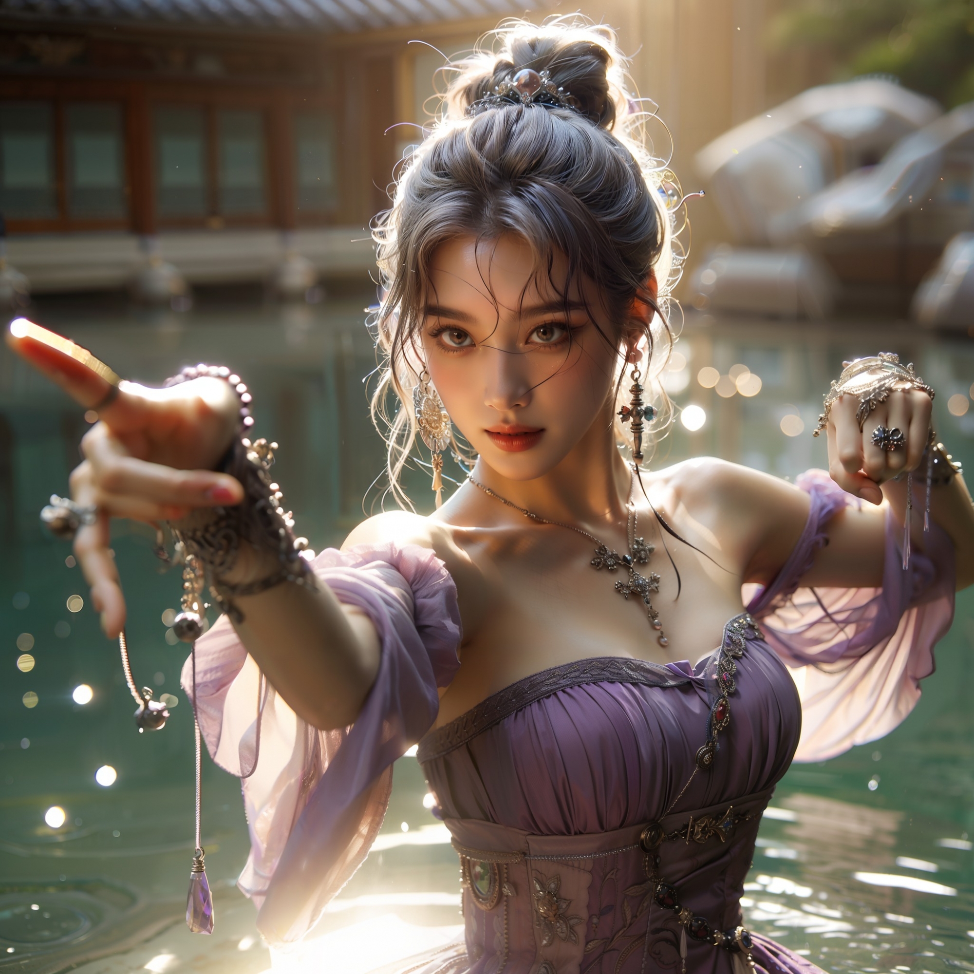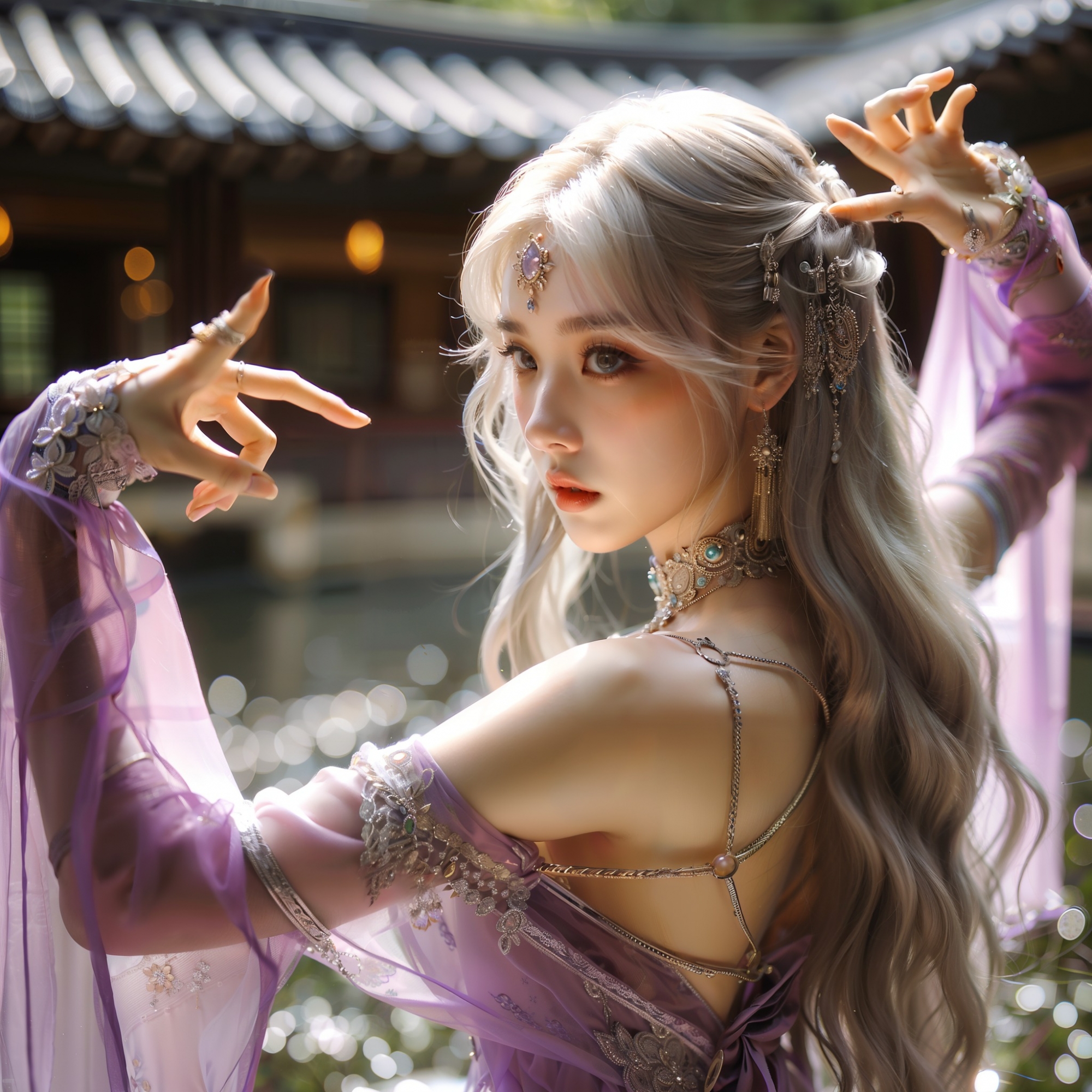 湖畔練武的少女