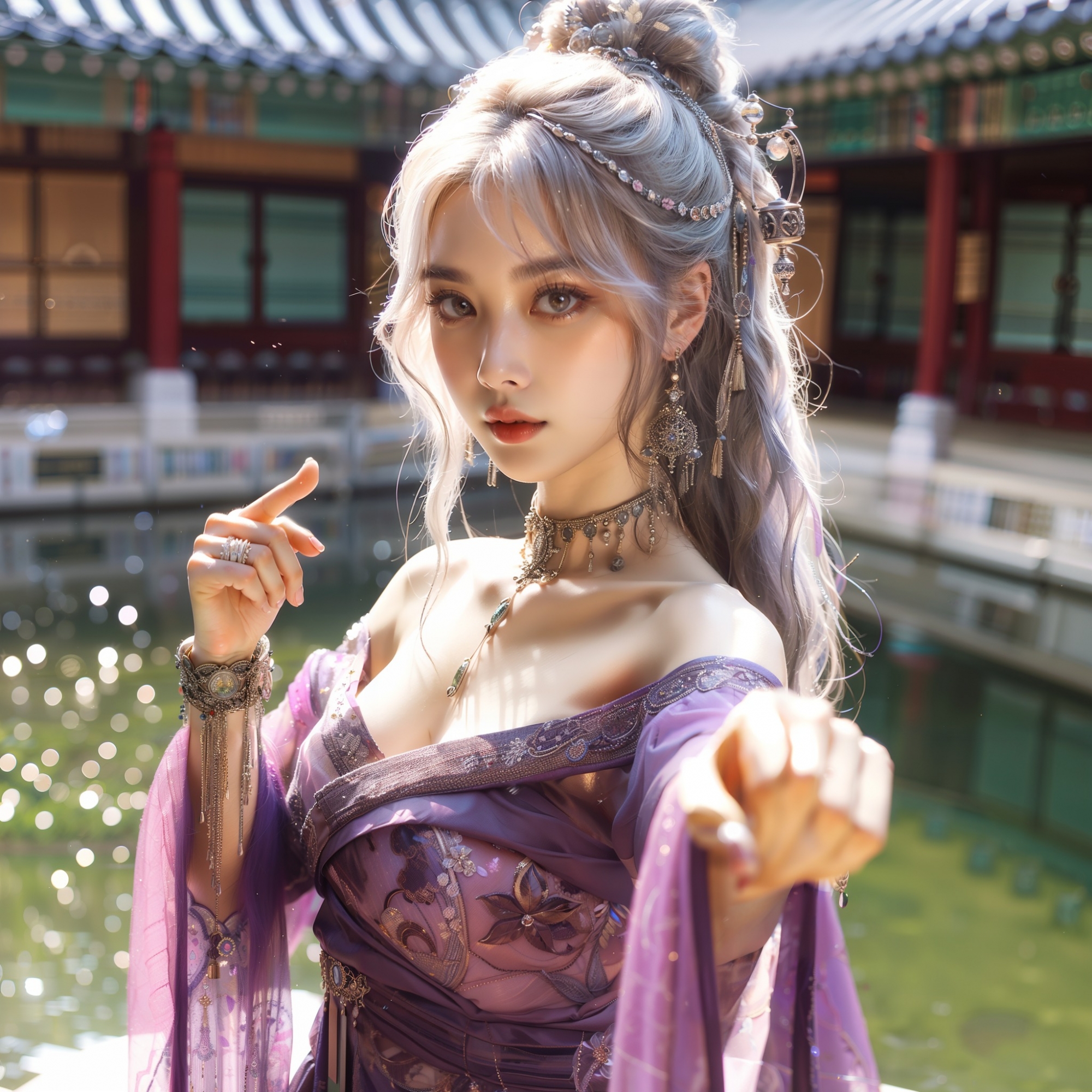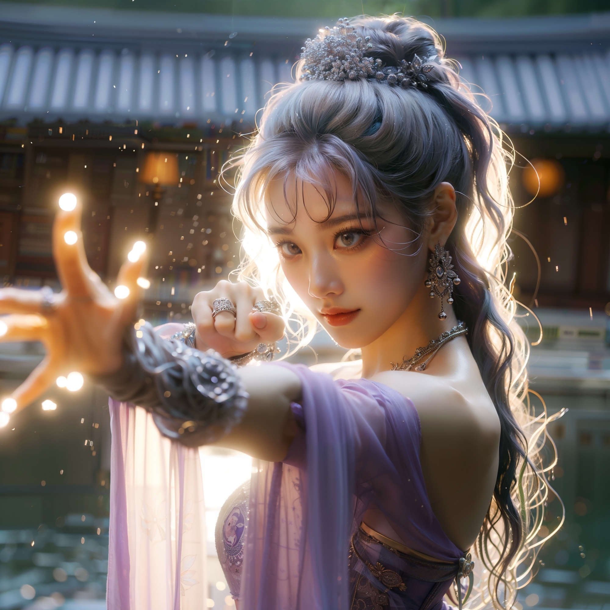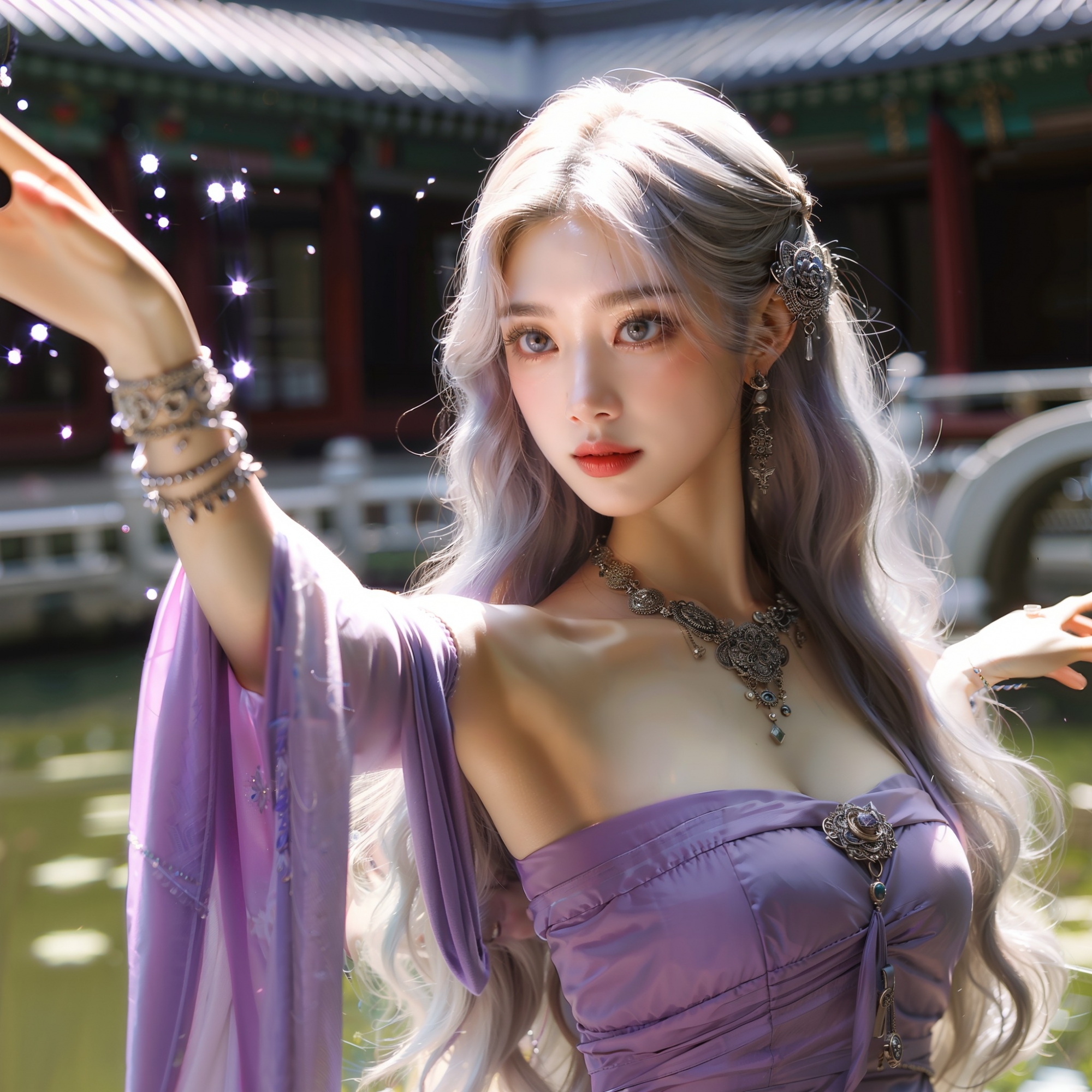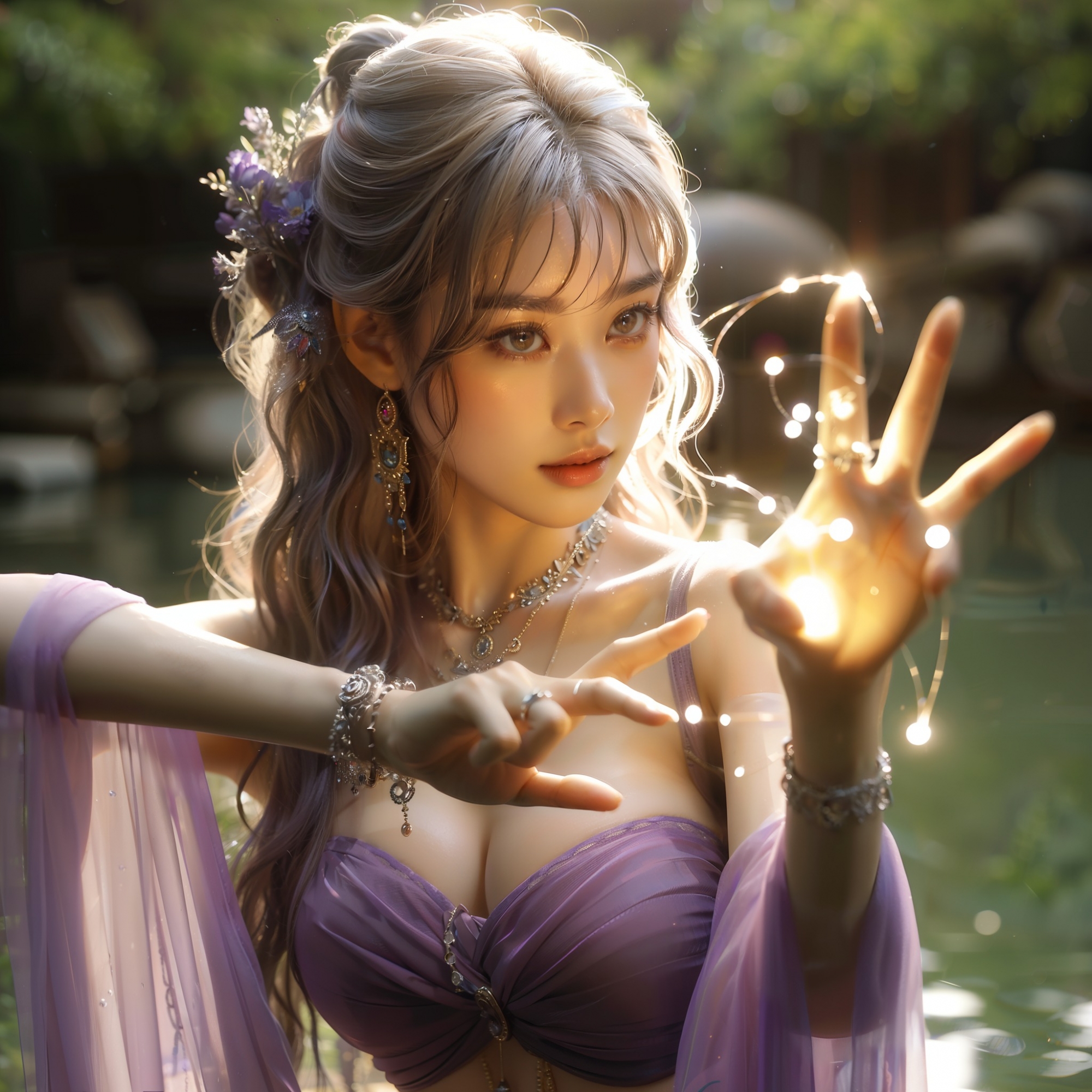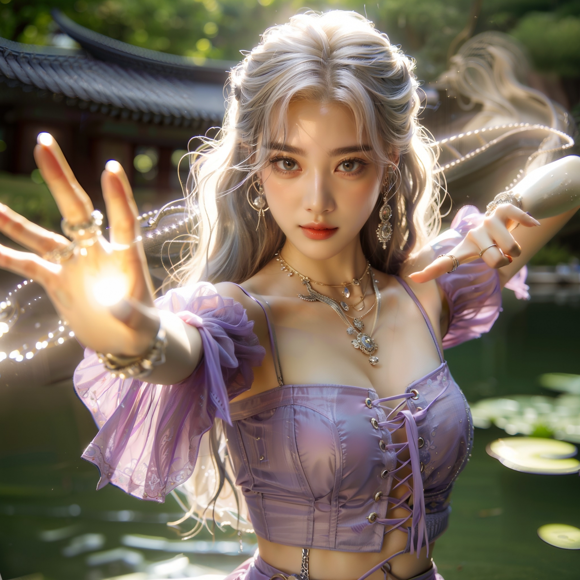湖畔練武的少女