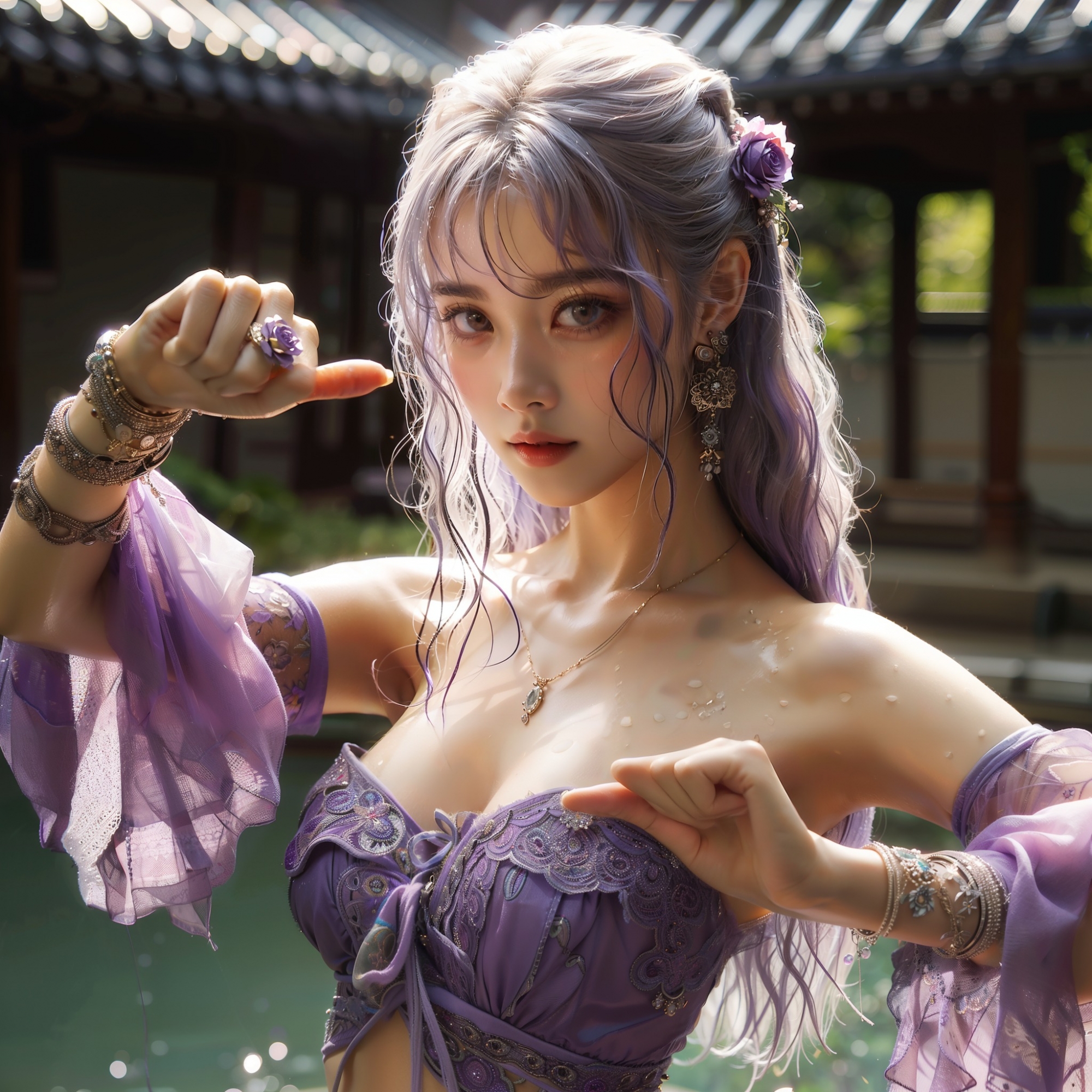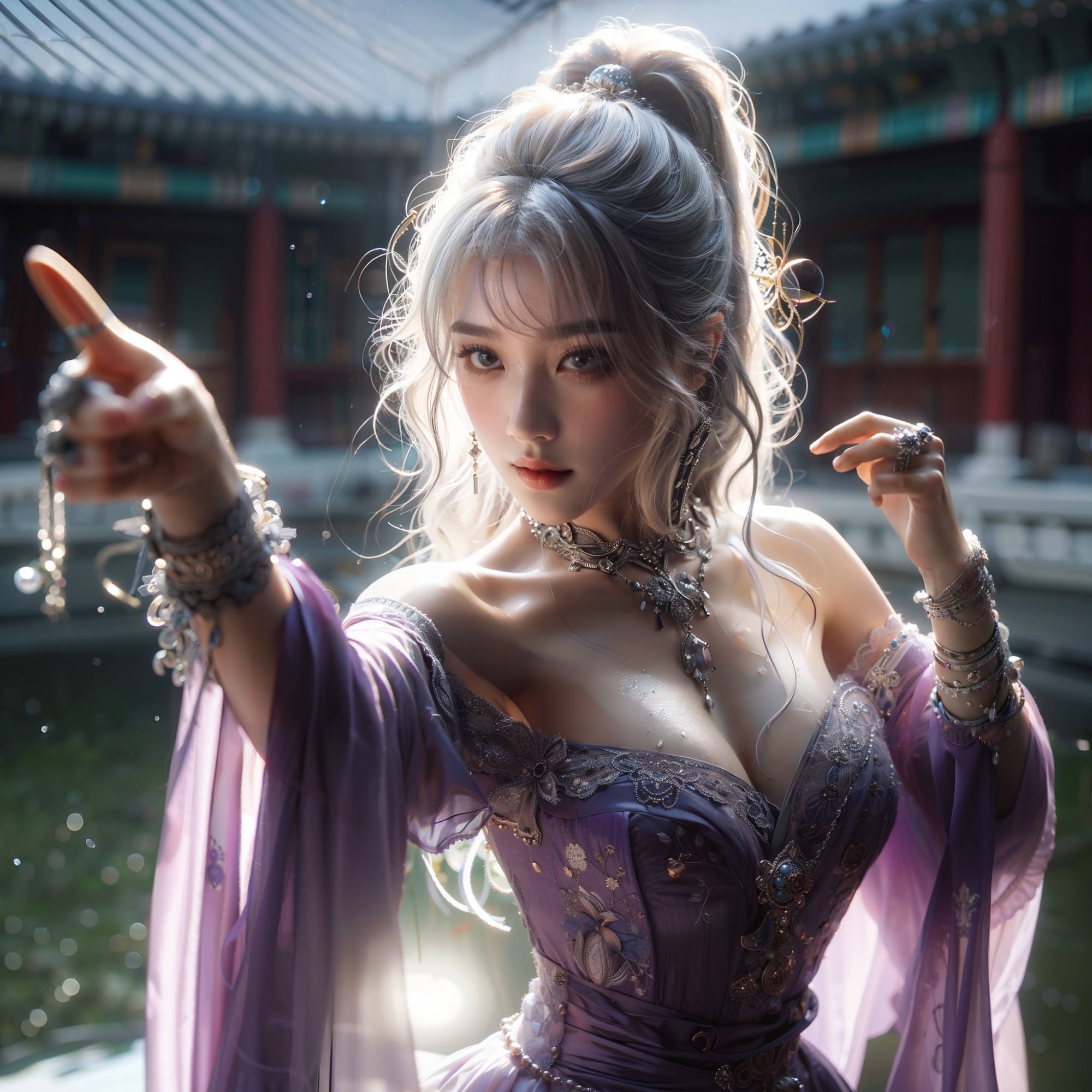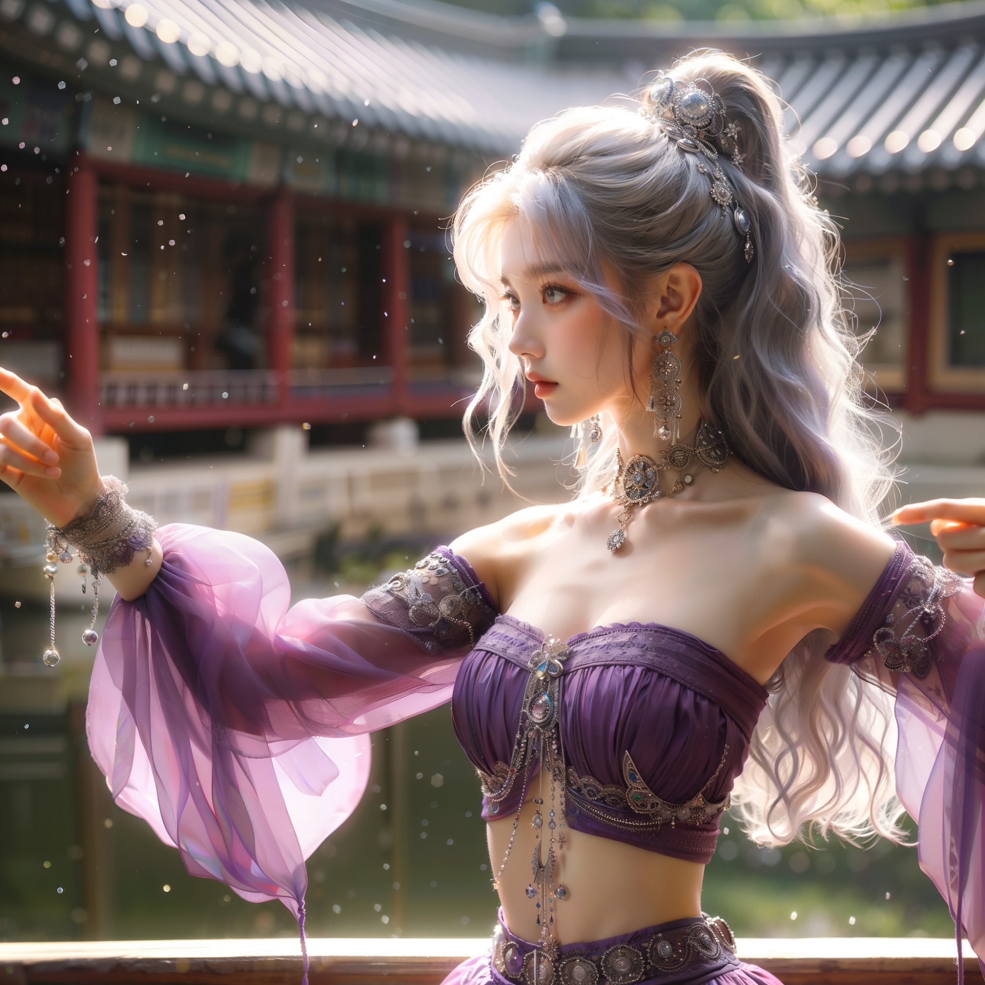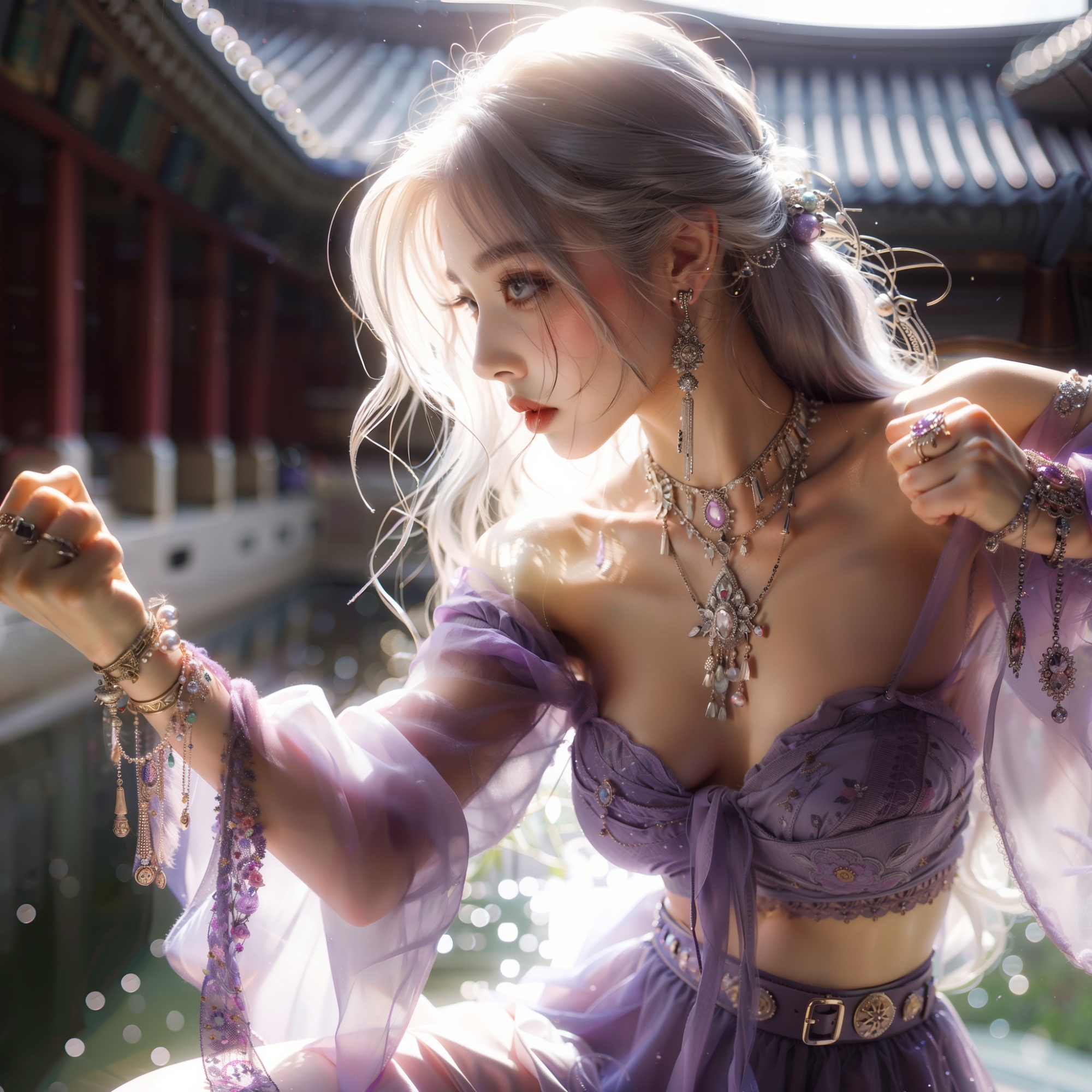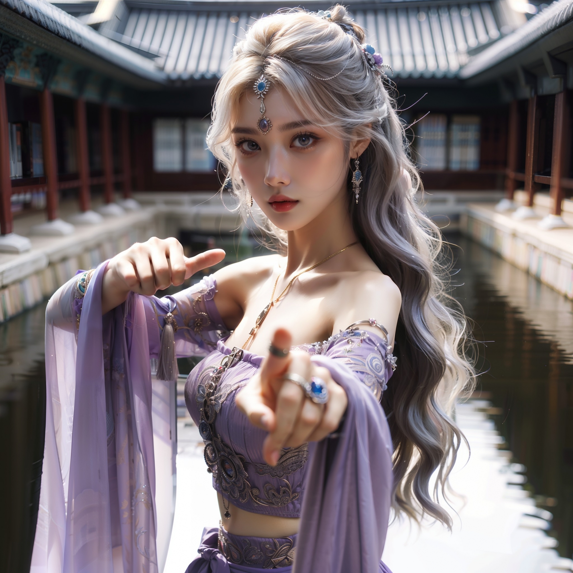 湖畔練武的少女