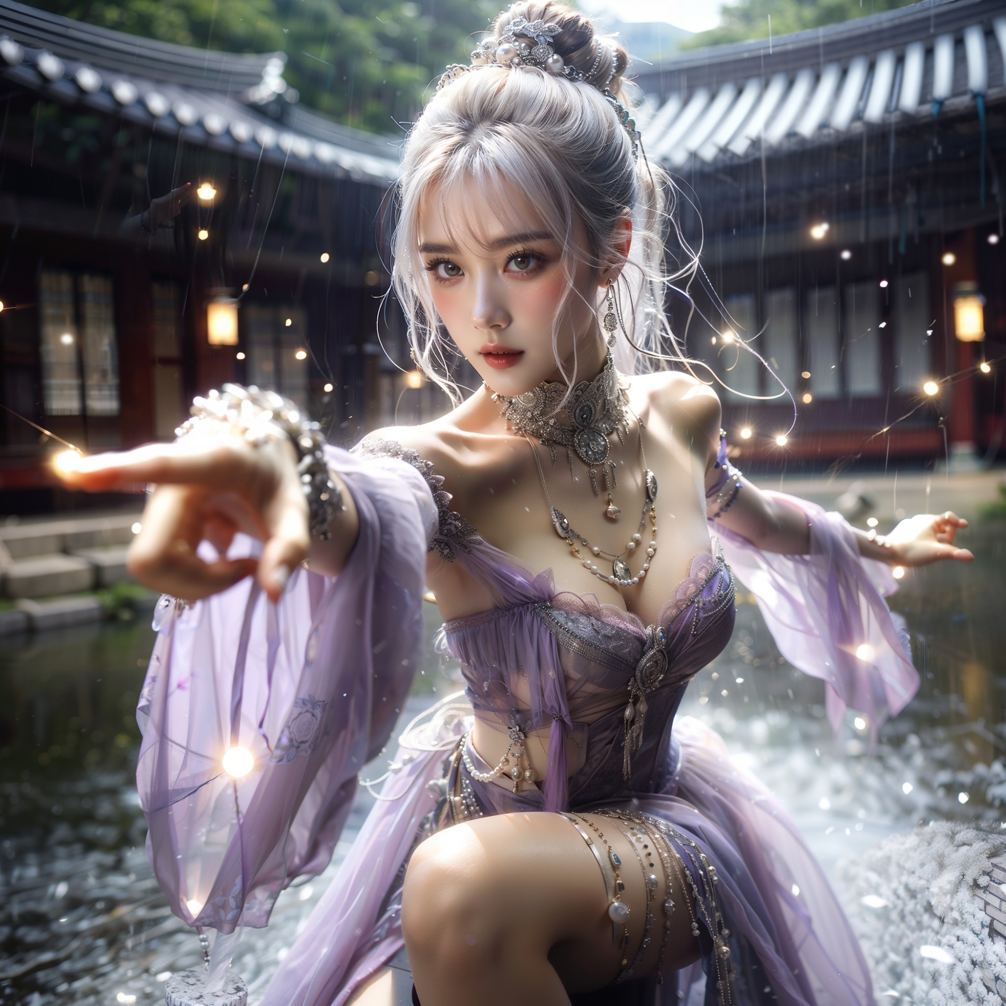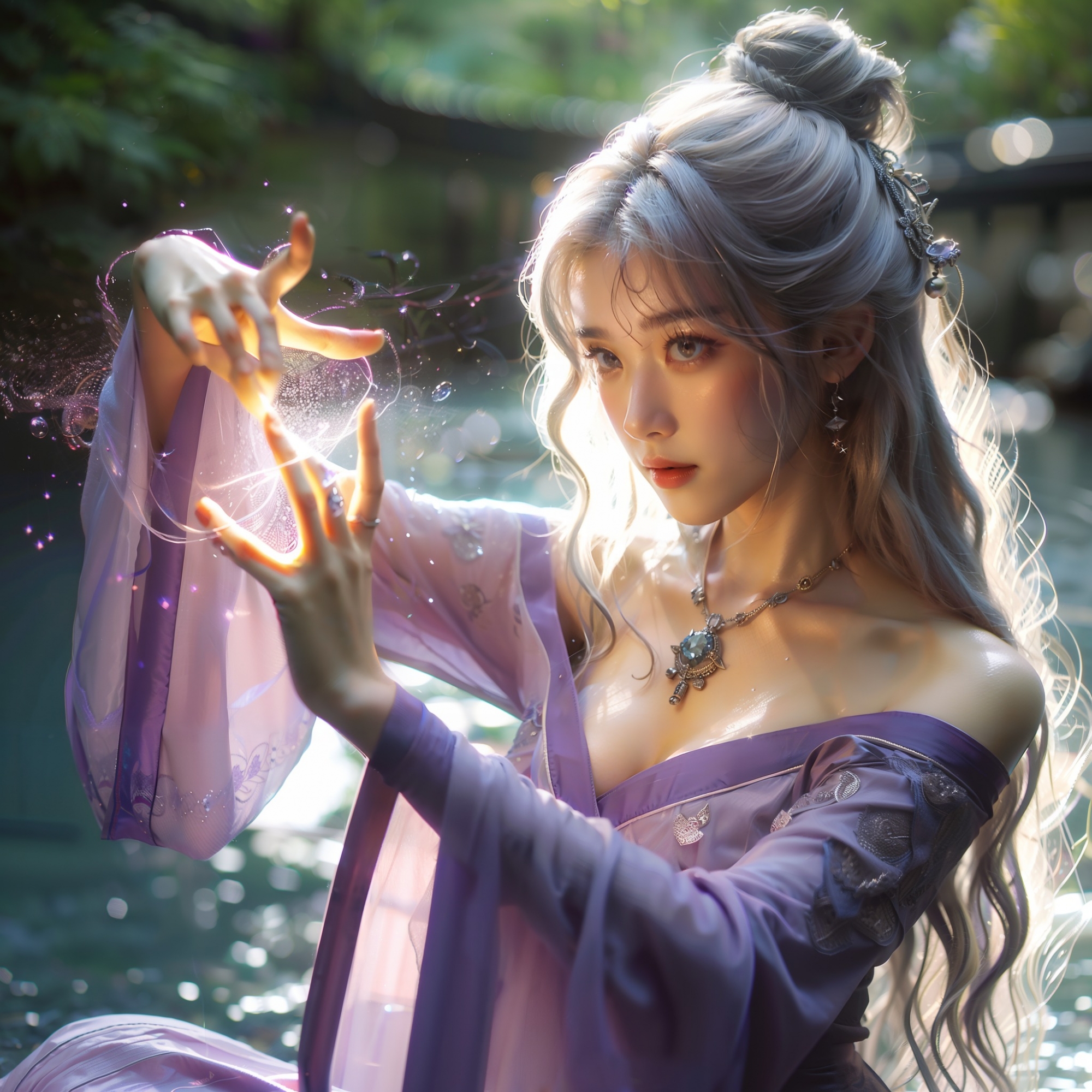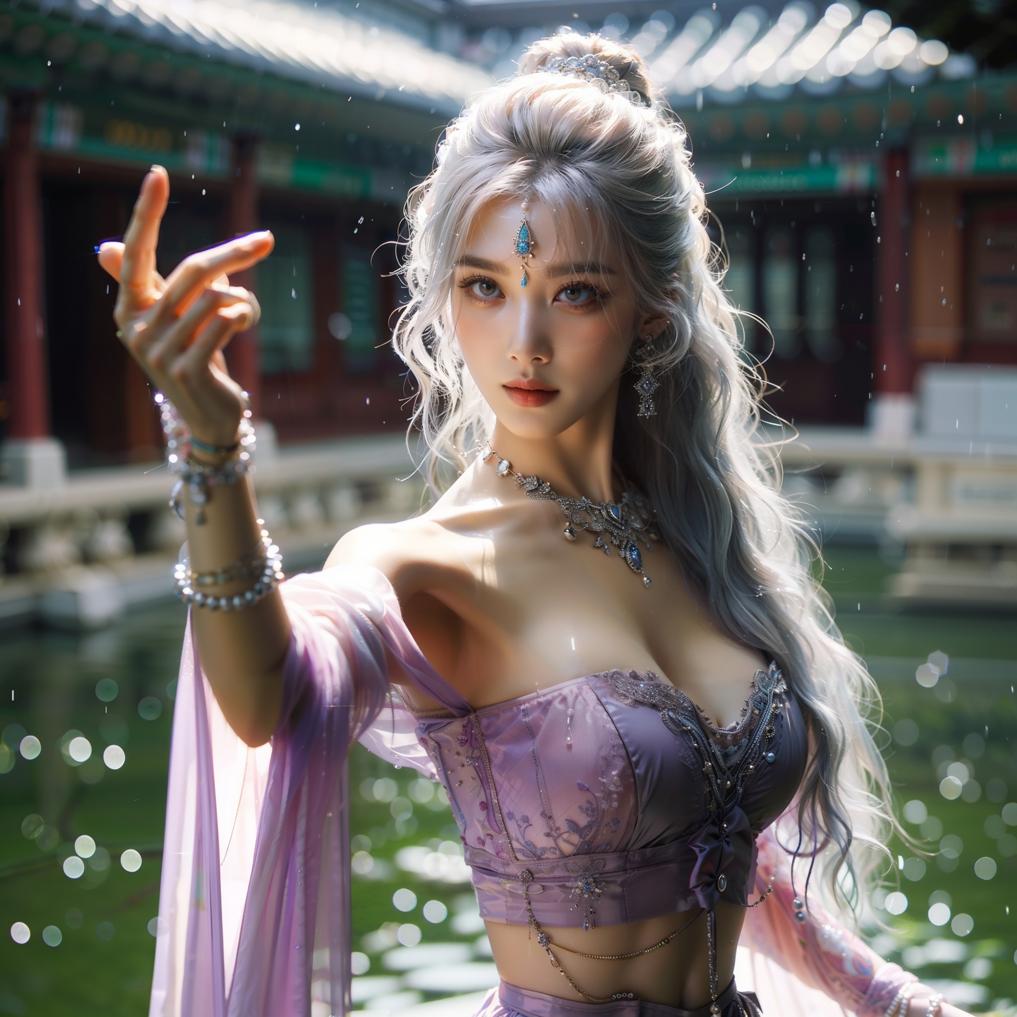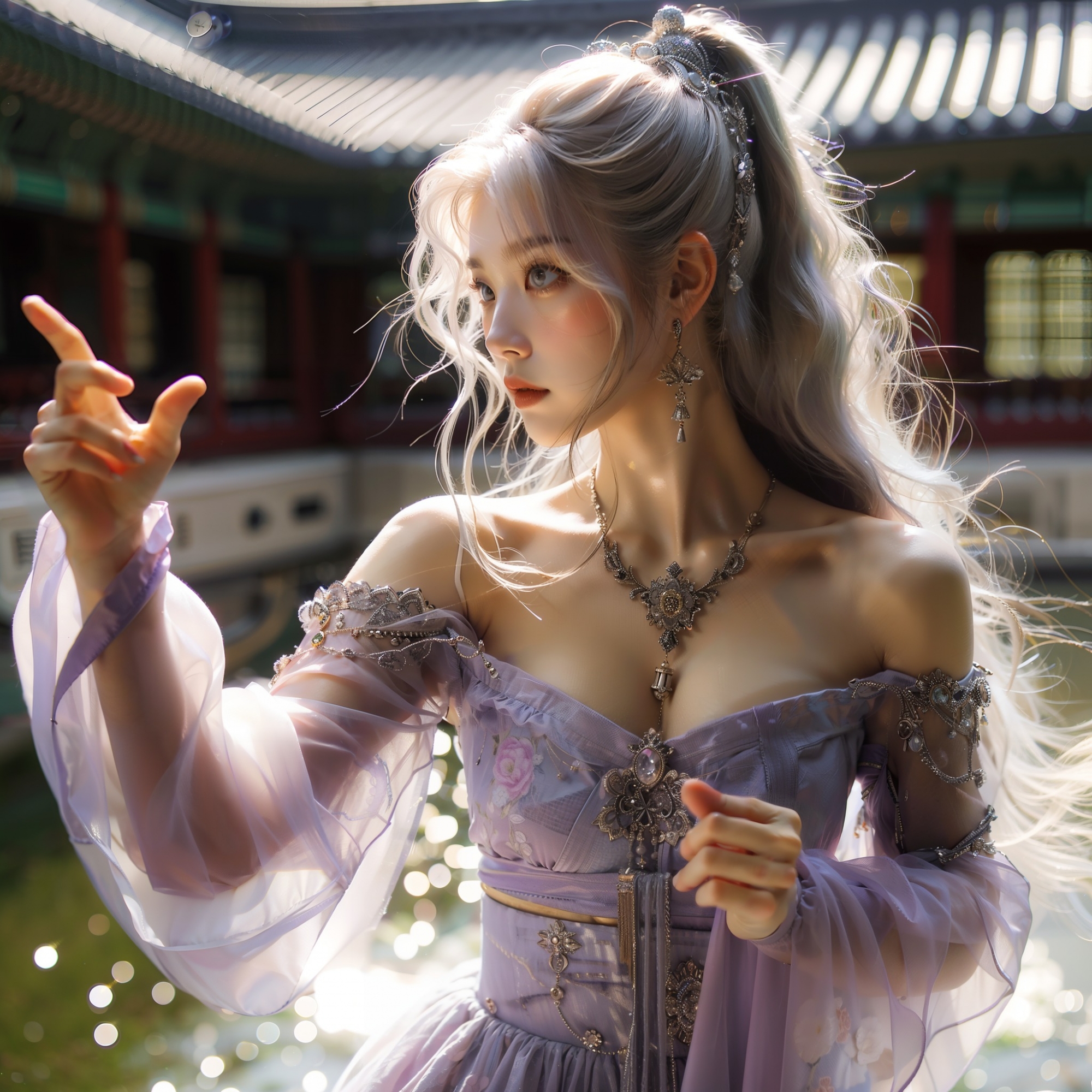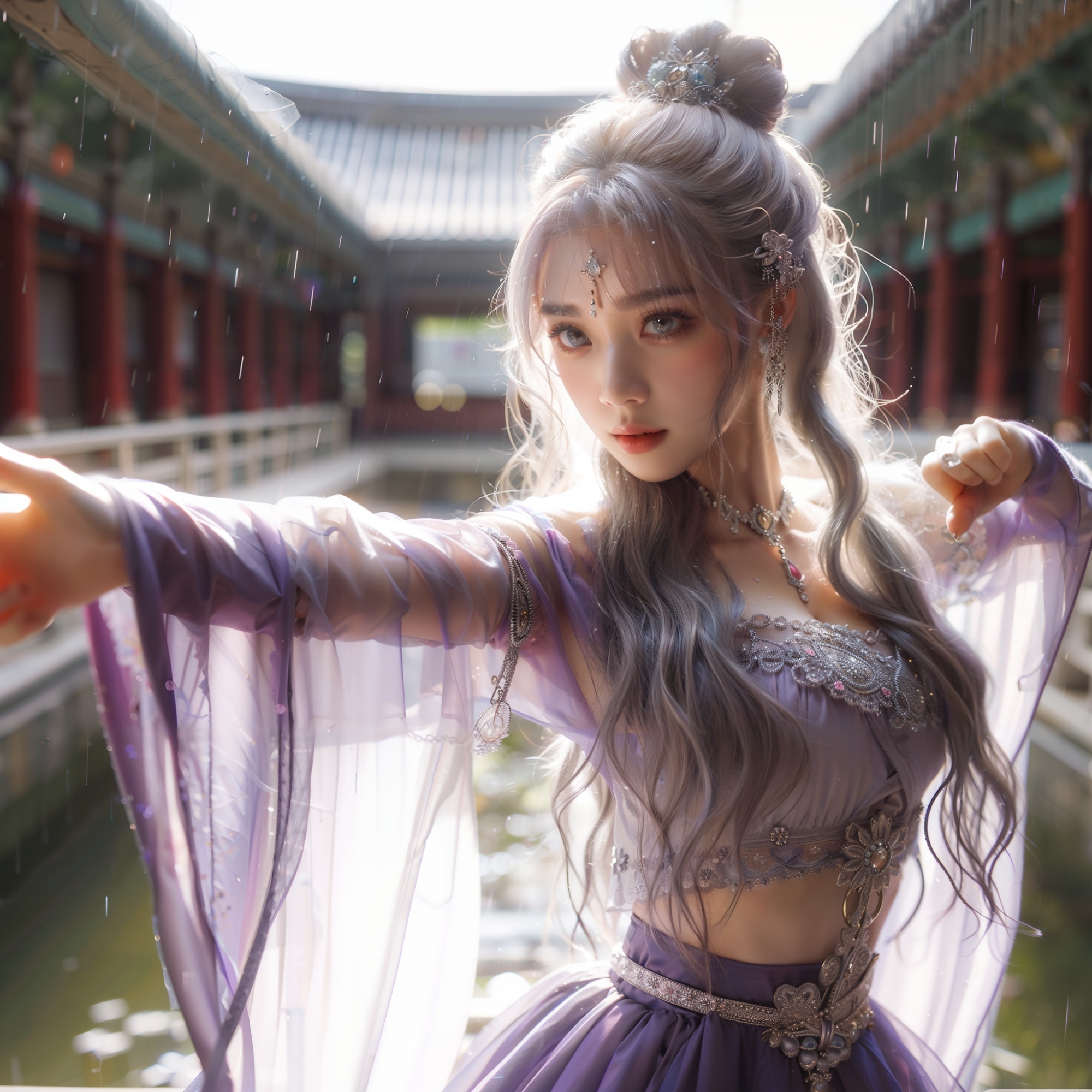 湖畔練武的少女
