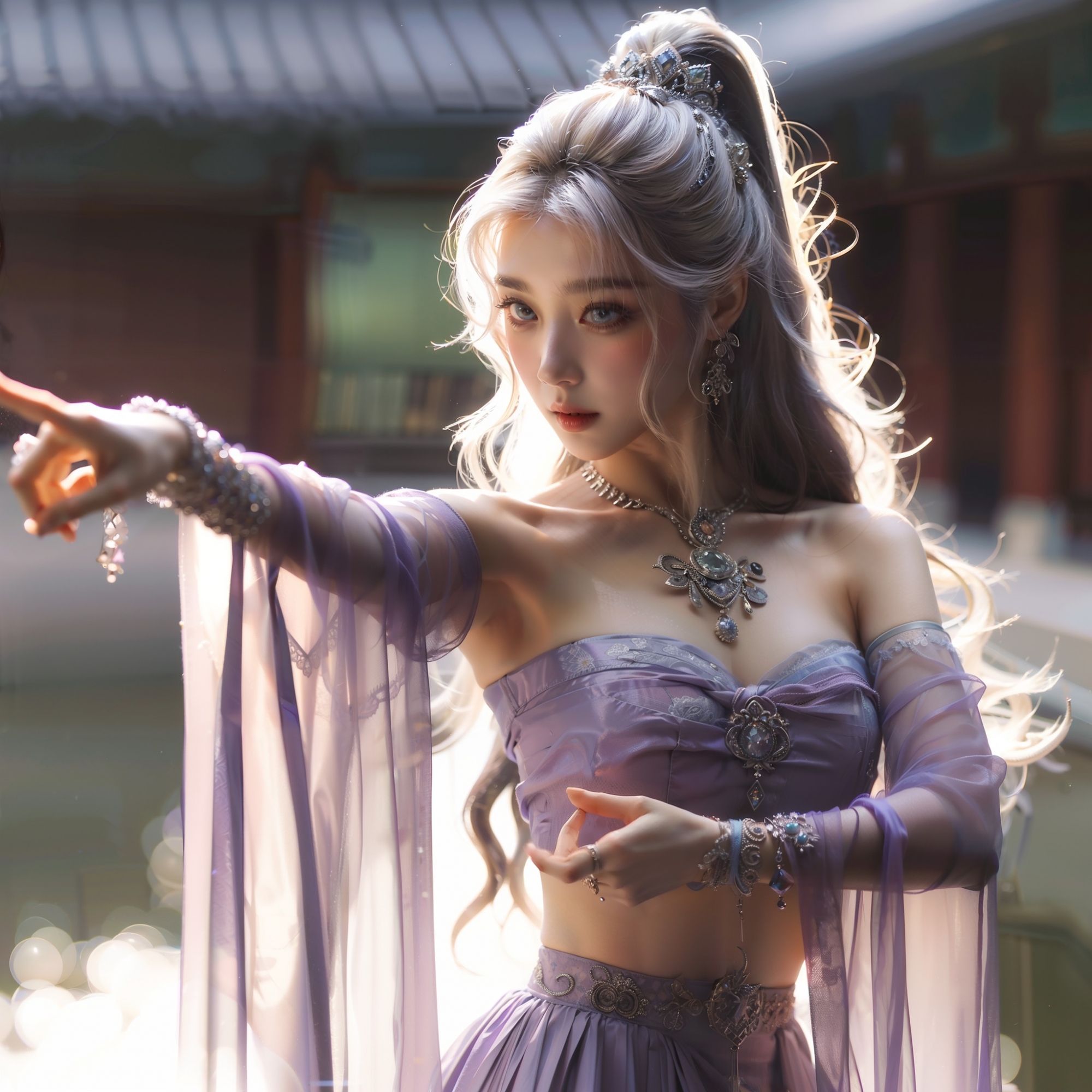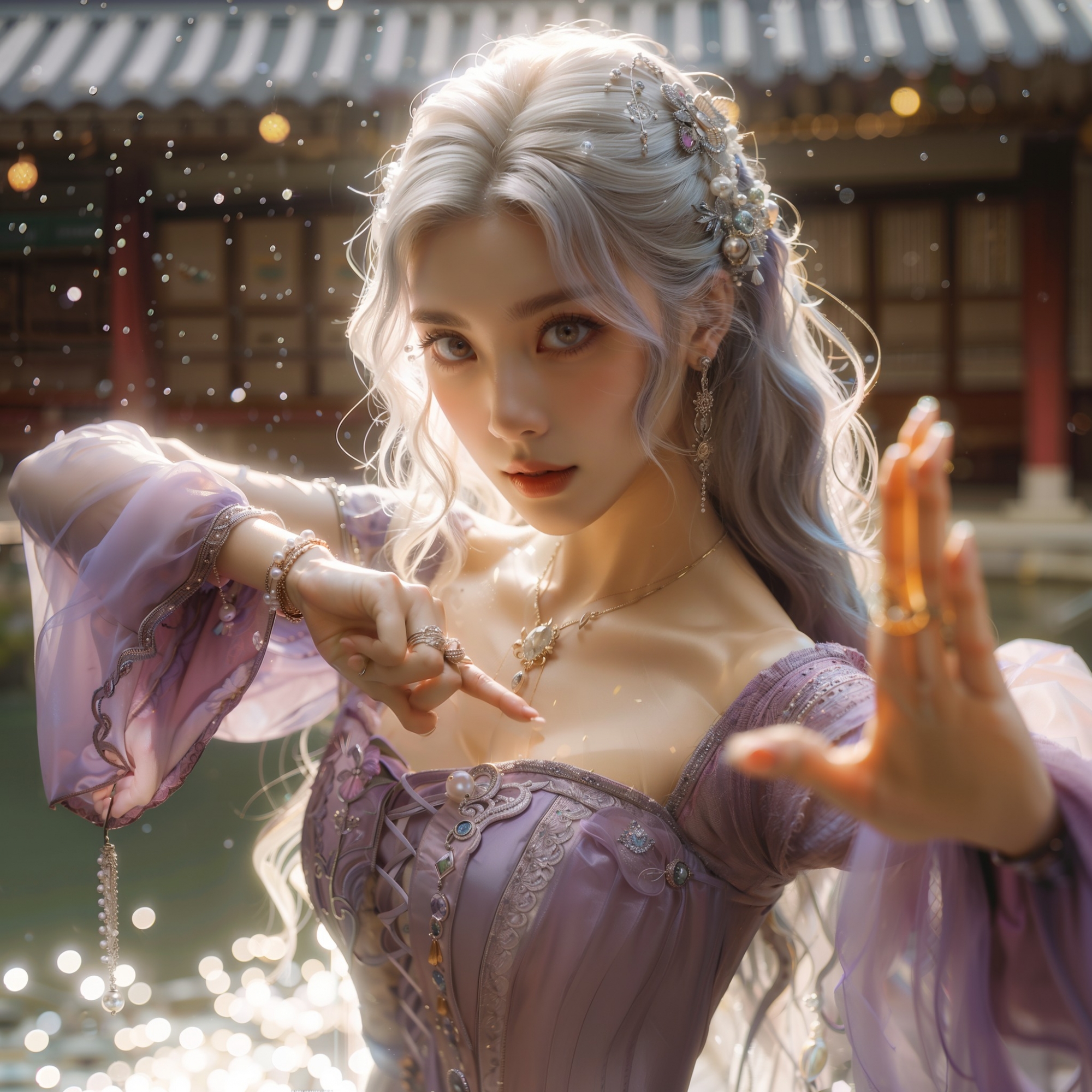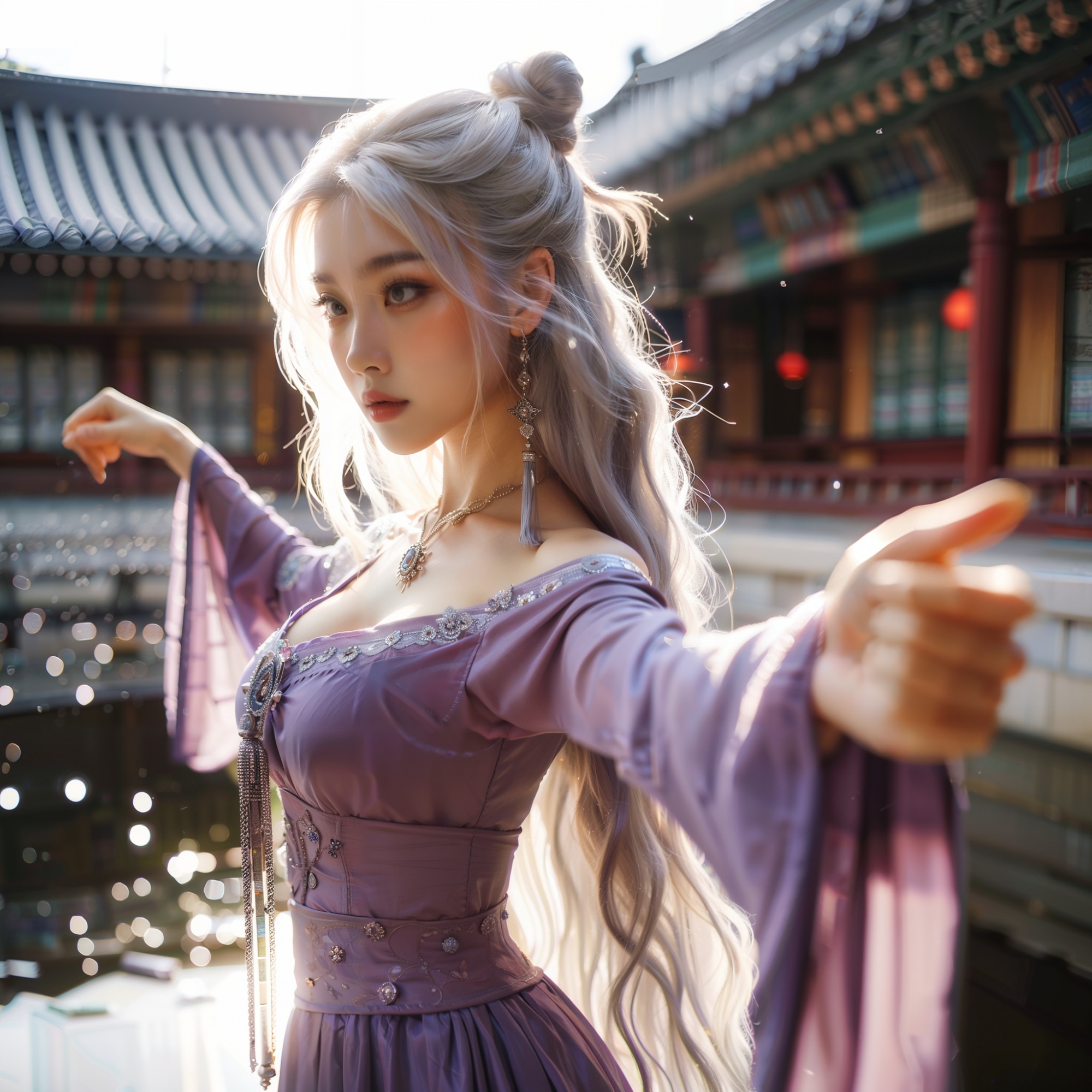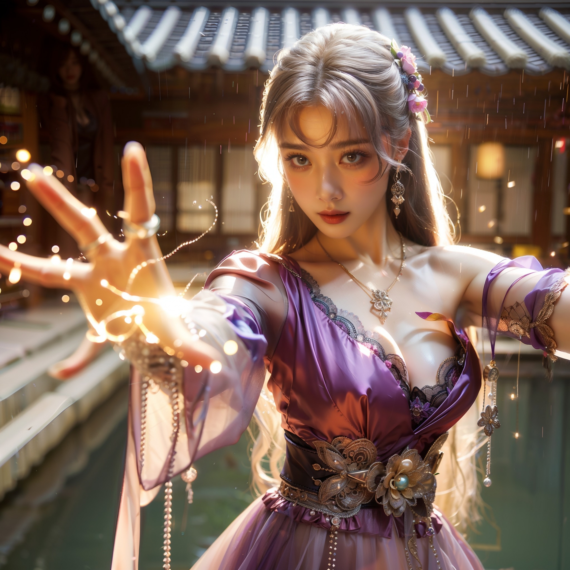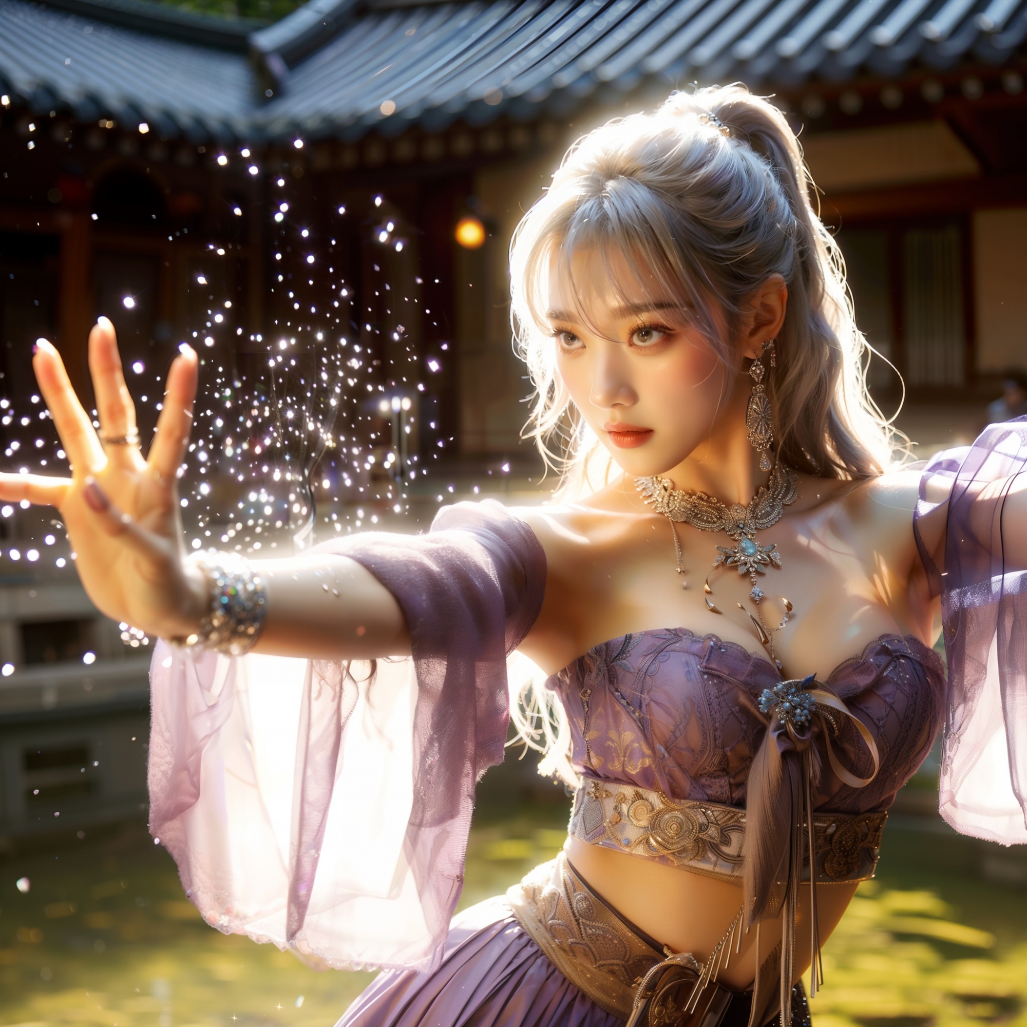 湖畔練武的少女