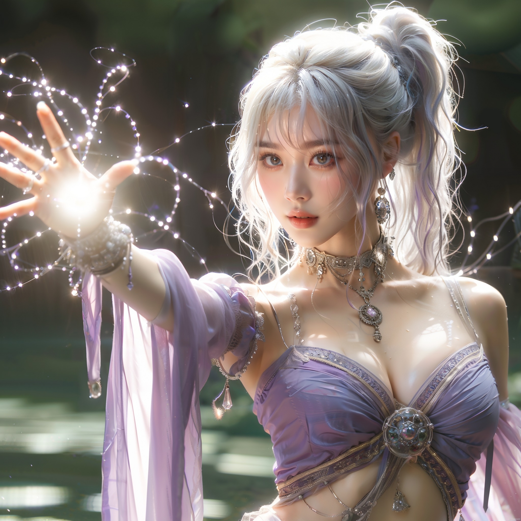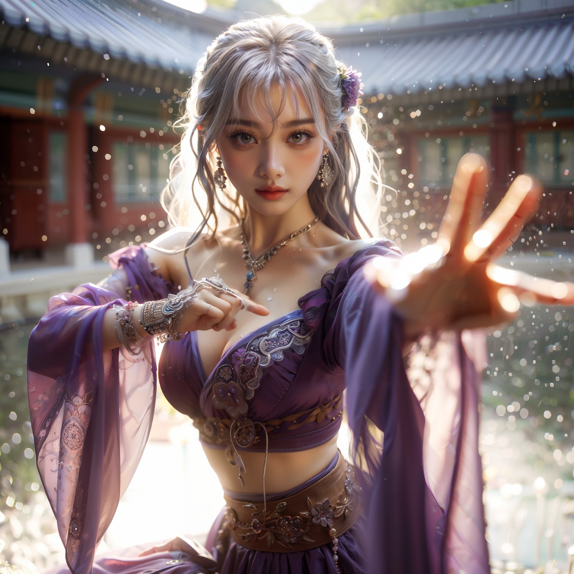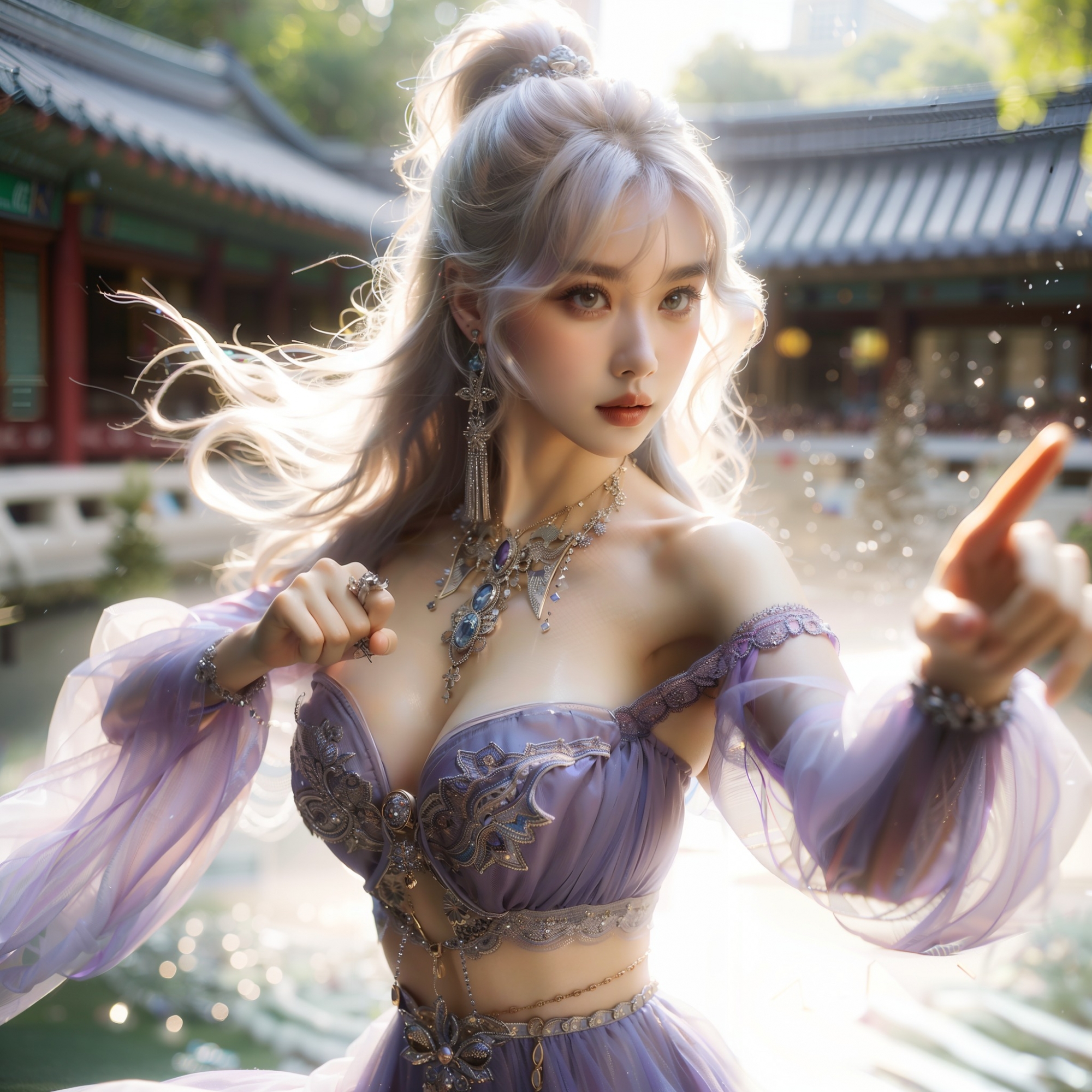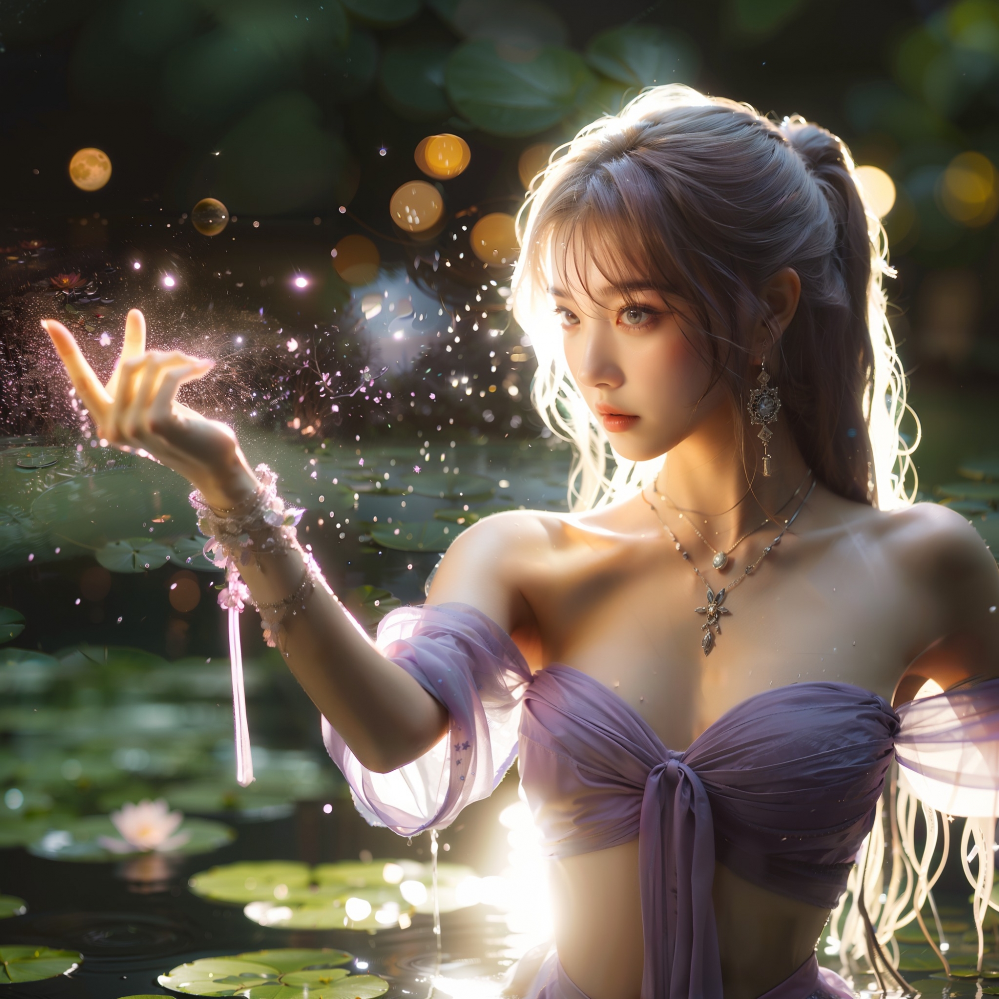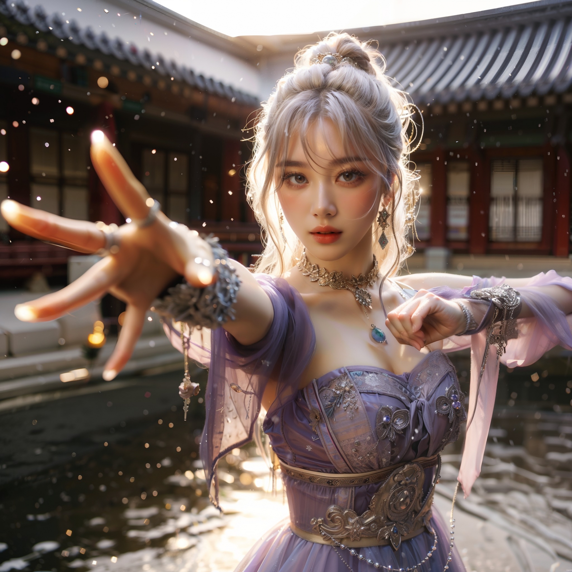 湖畔練武的少女