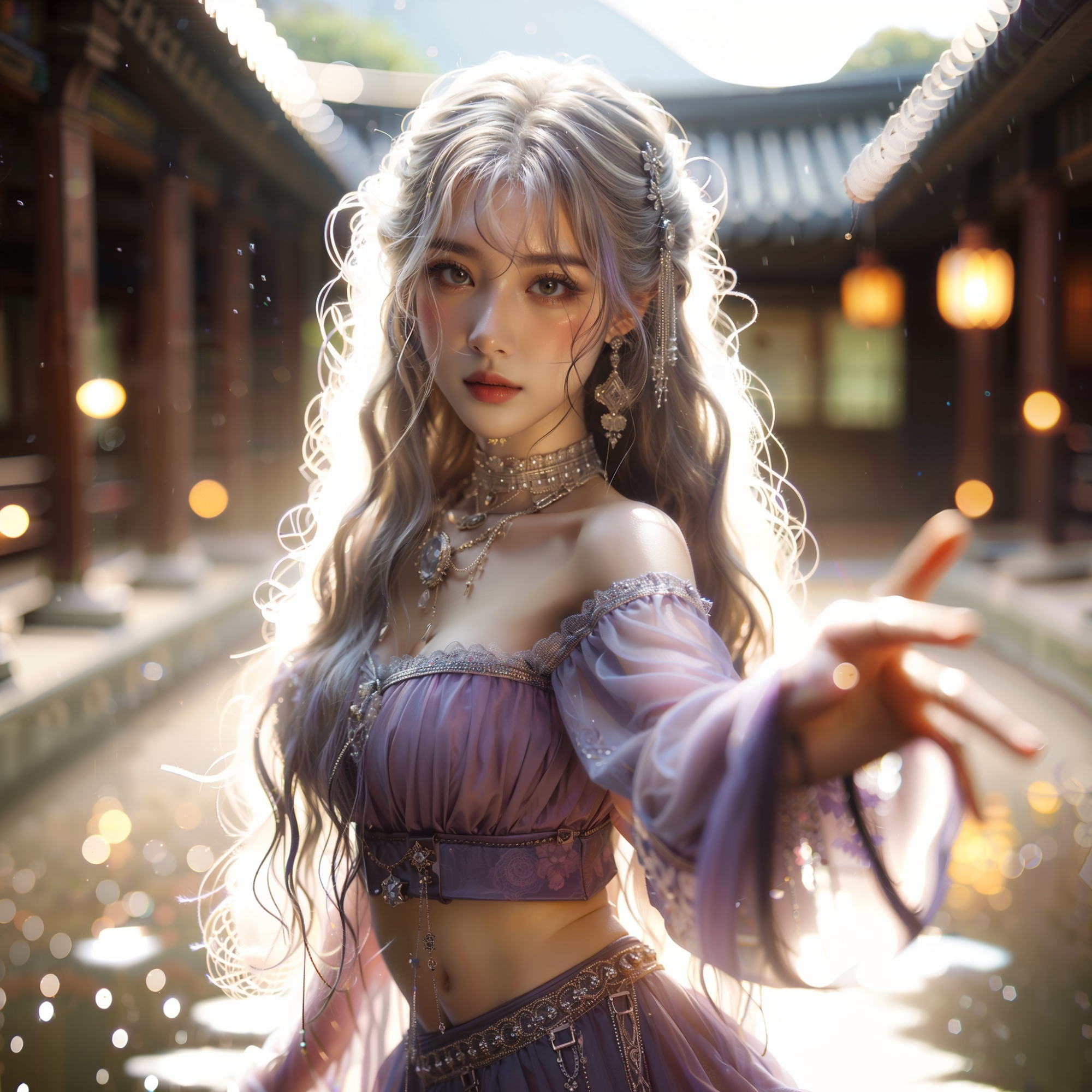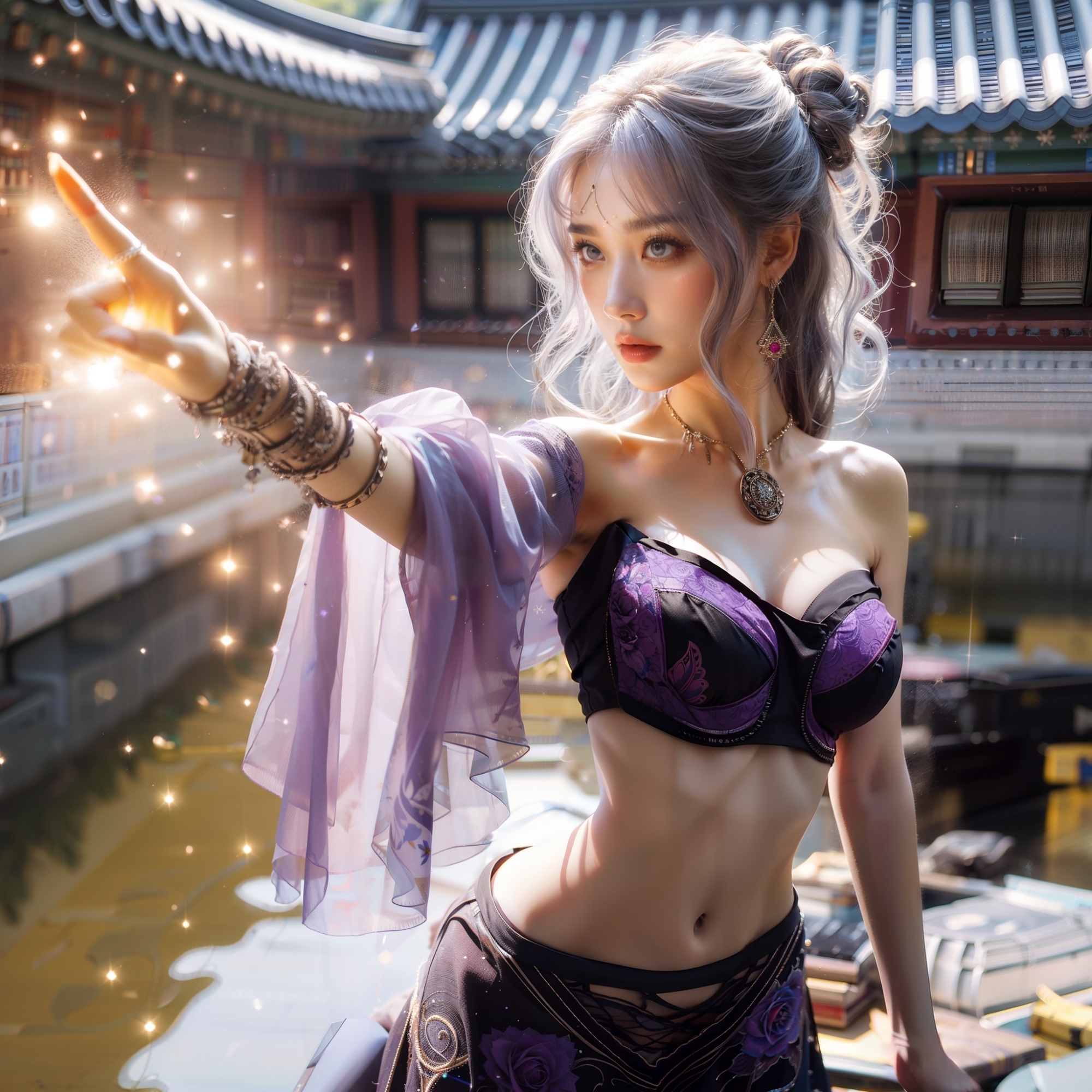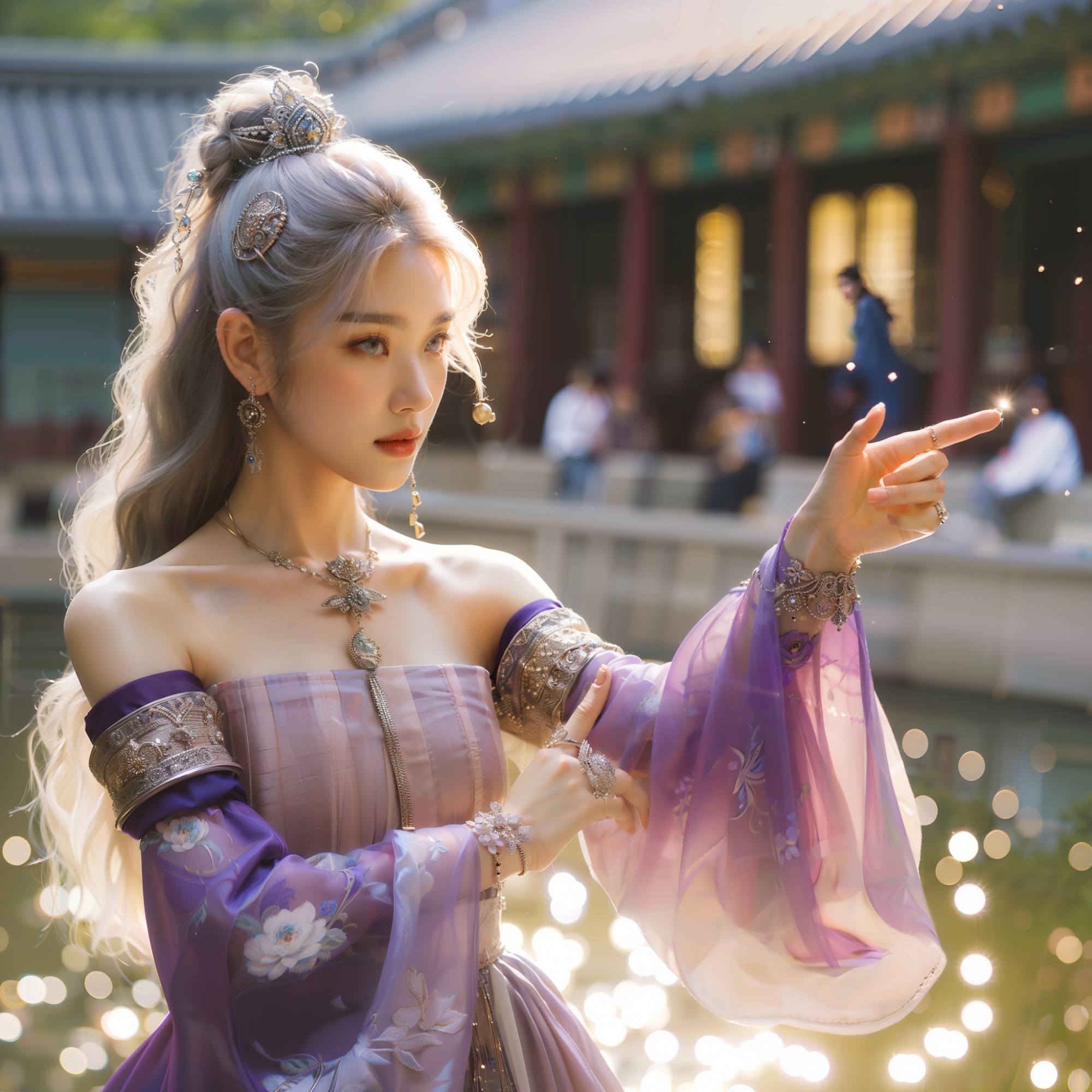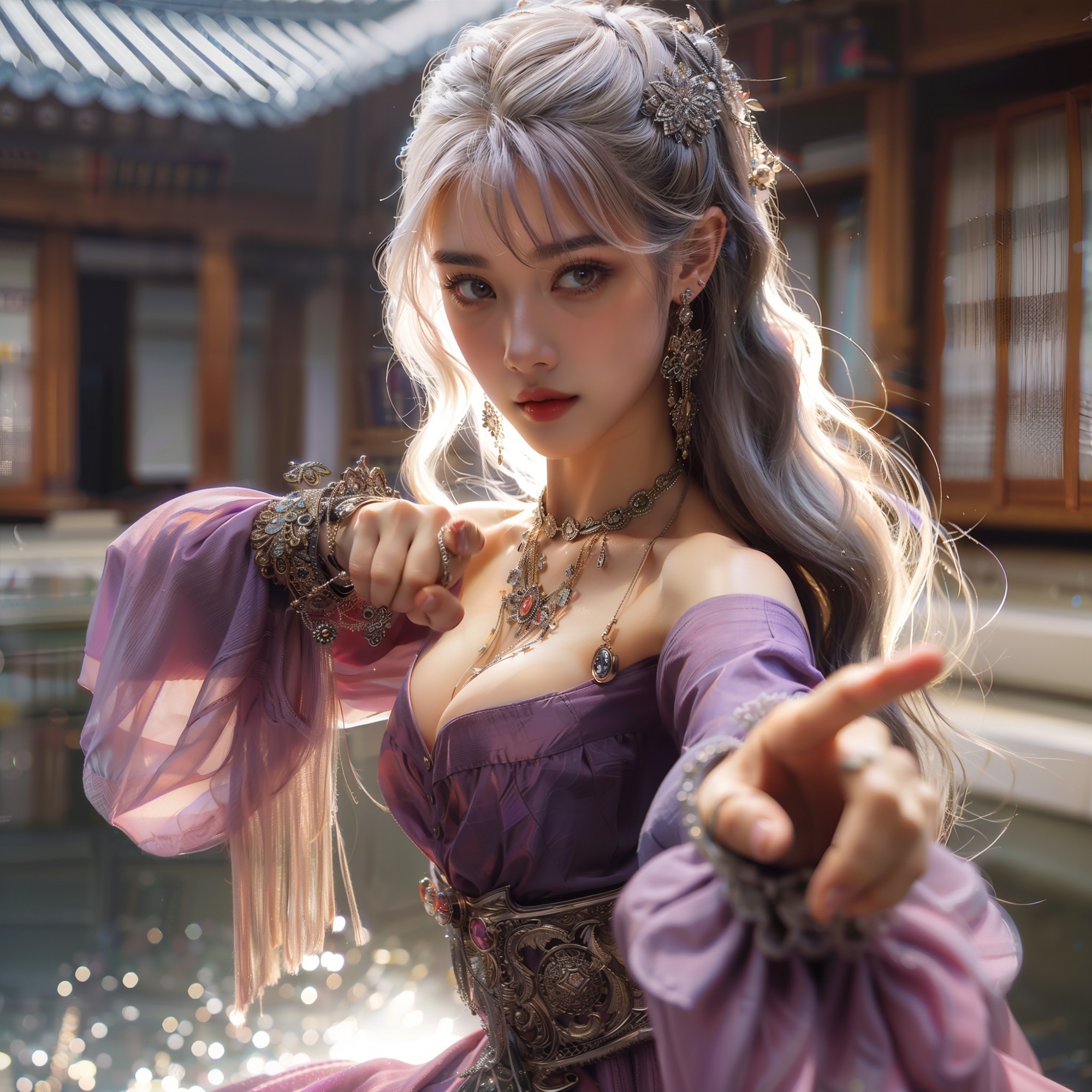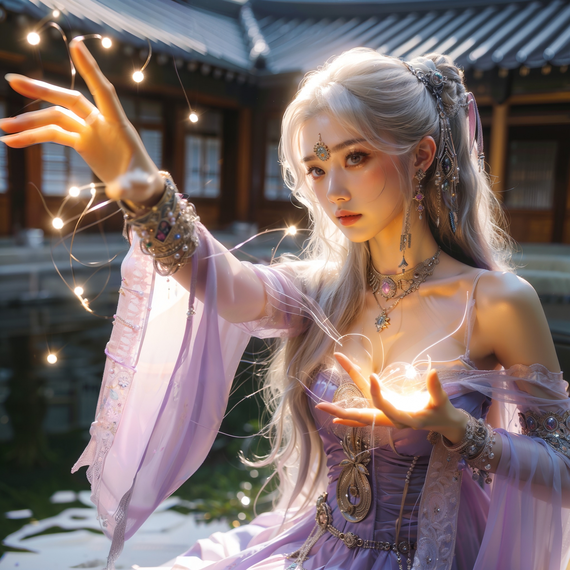湖畔練武的少女