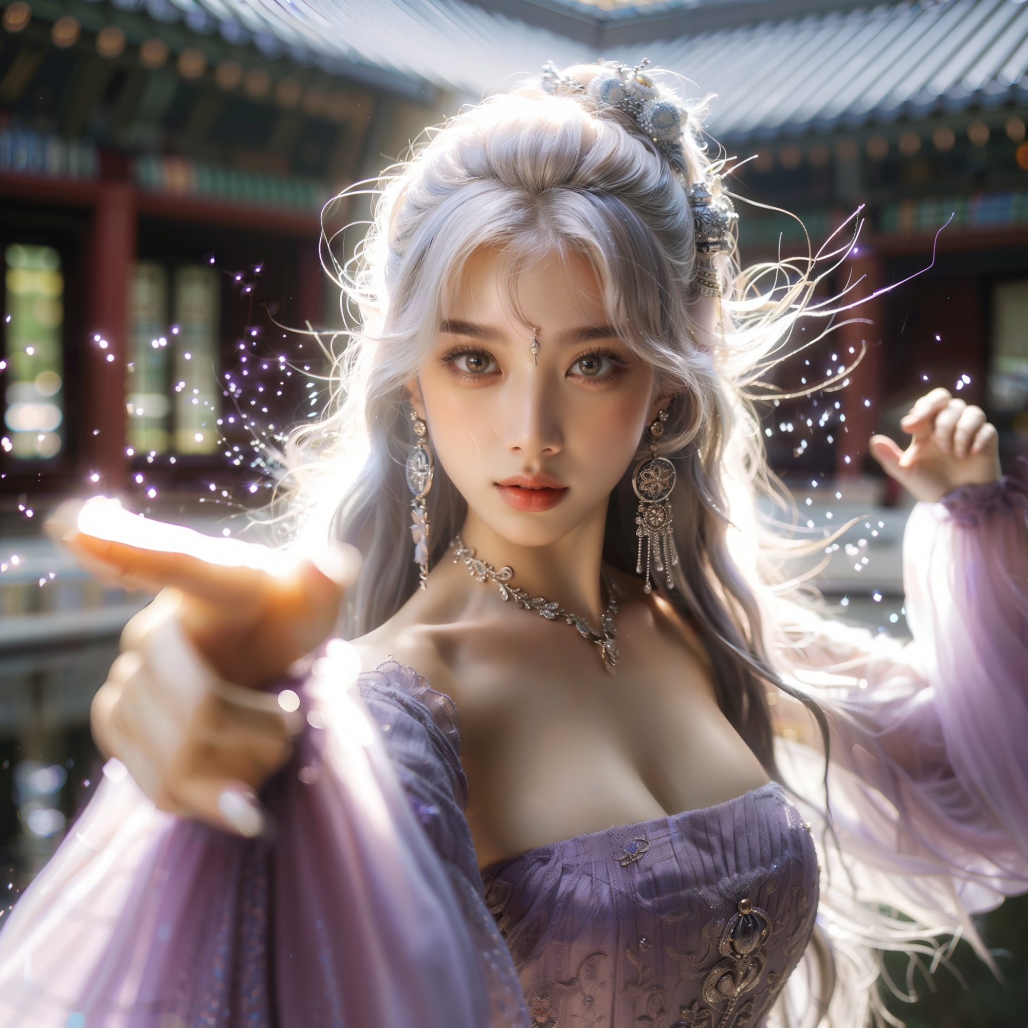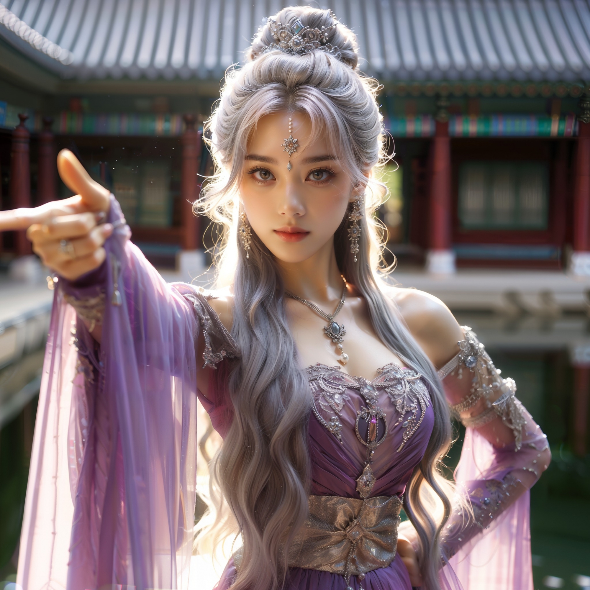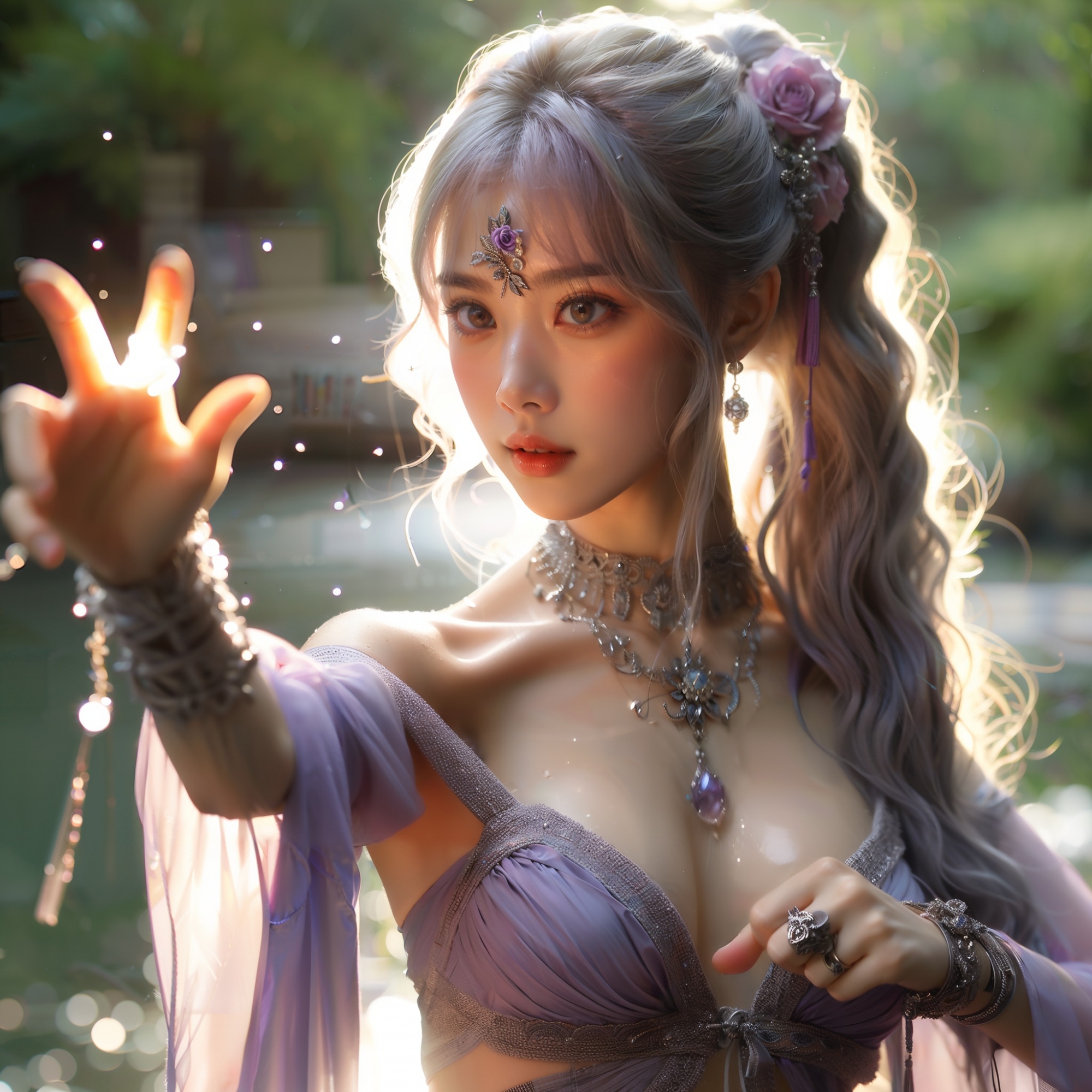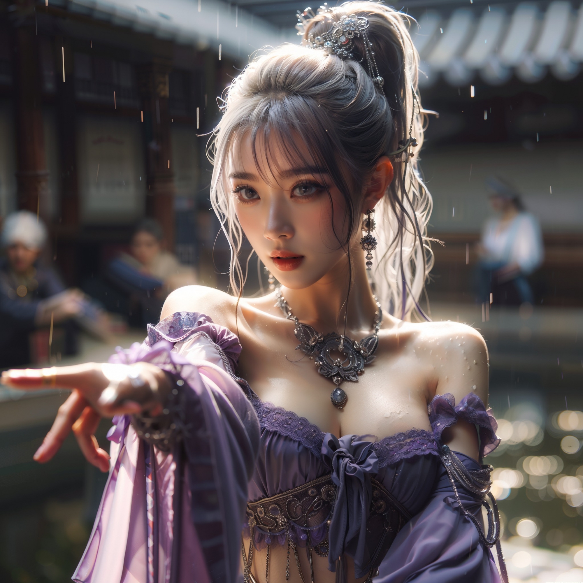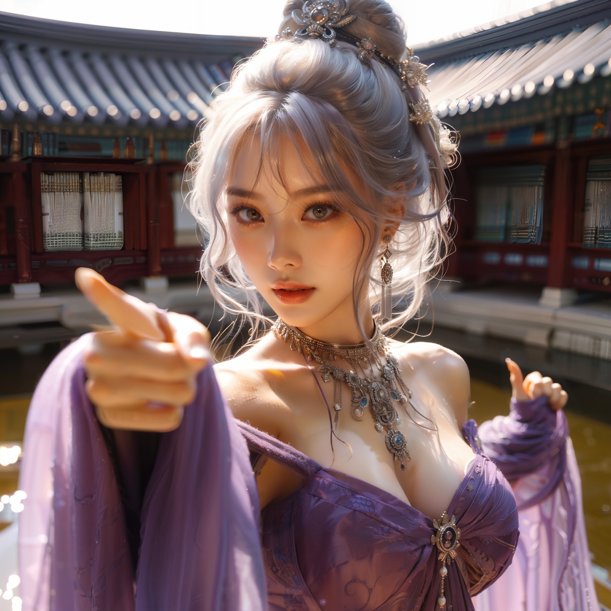 湖畔練武的少女