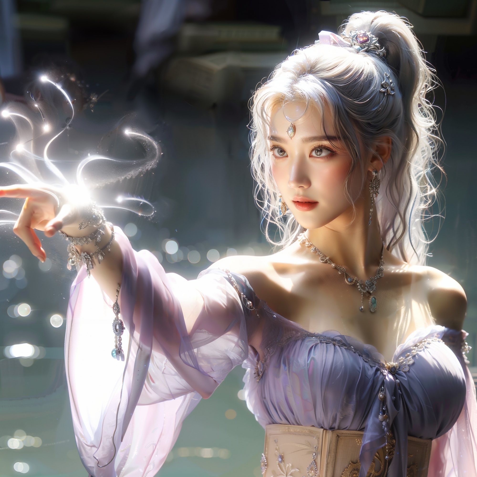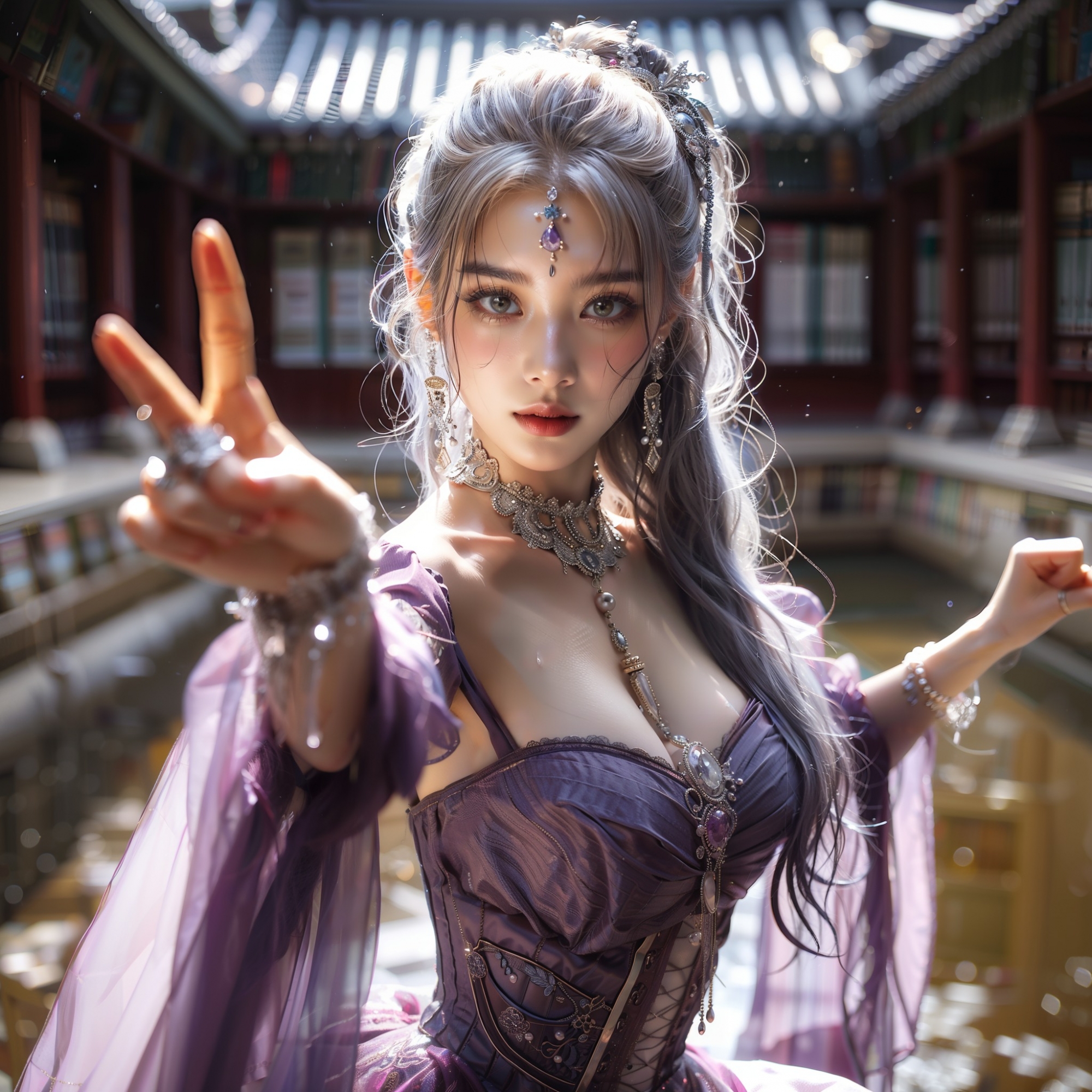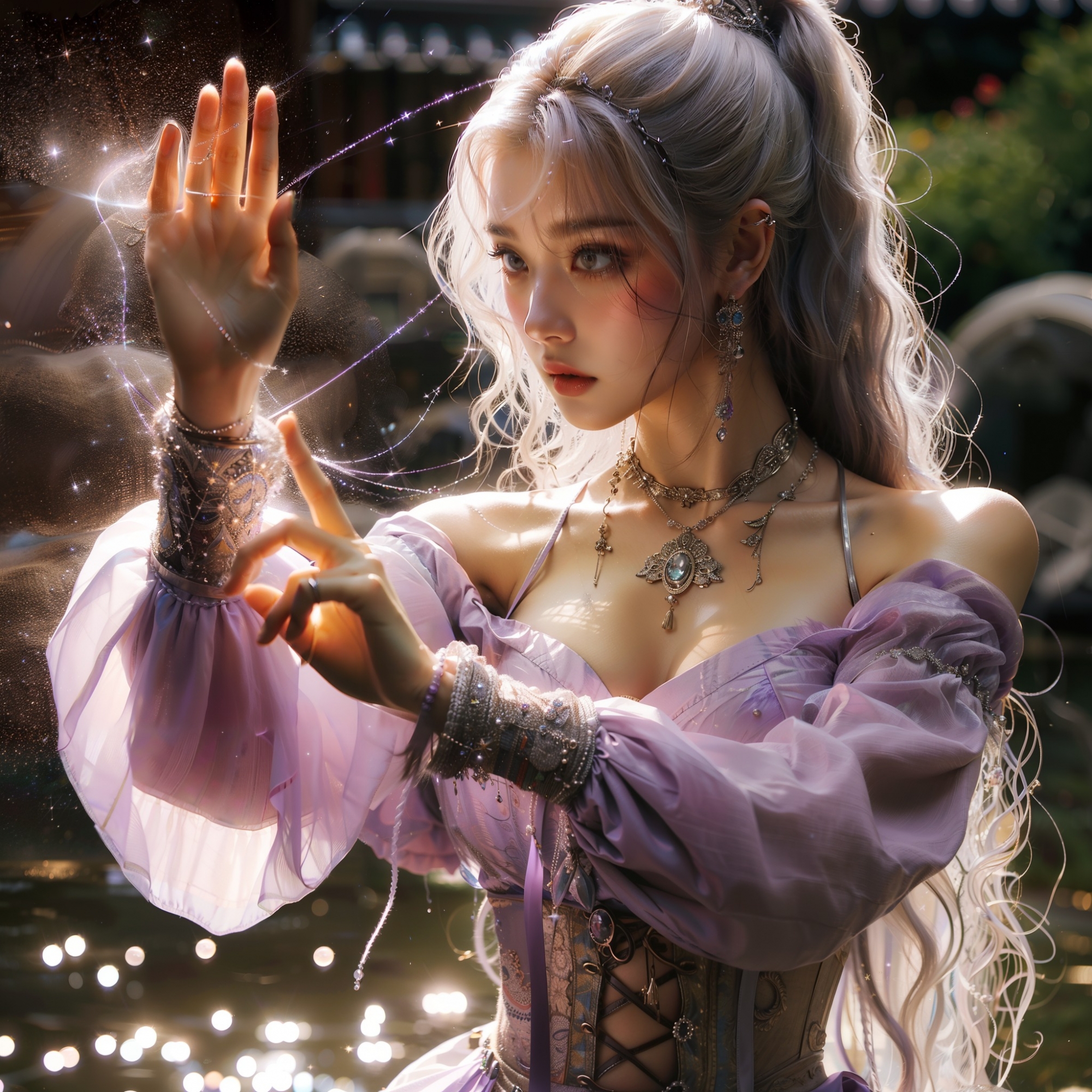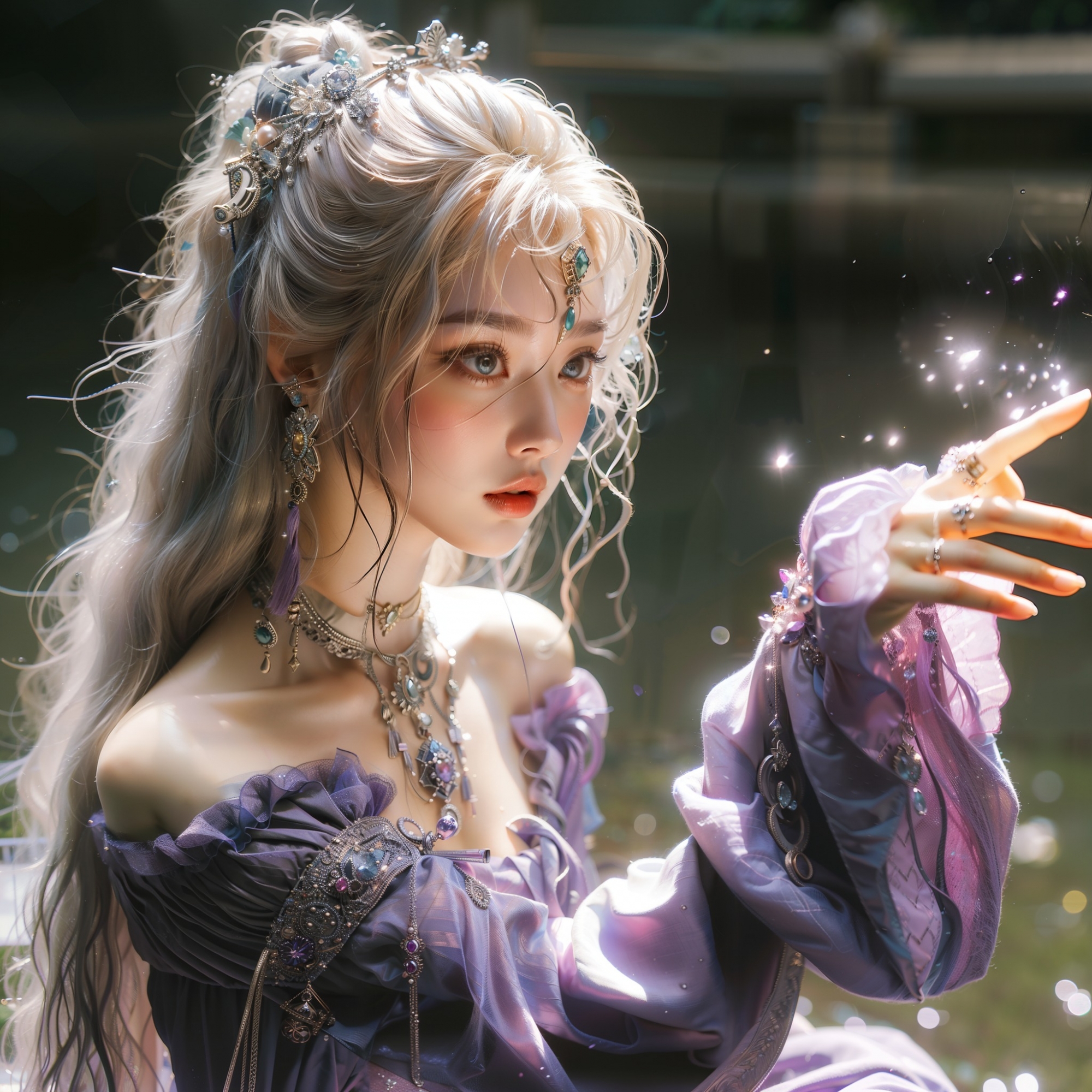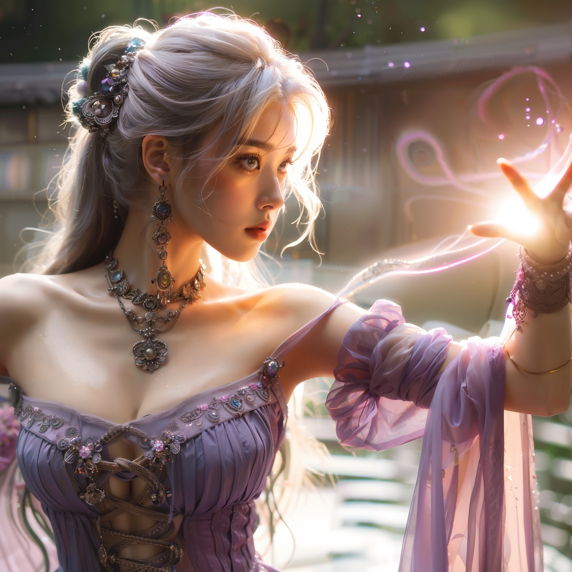湖畔練武的少女